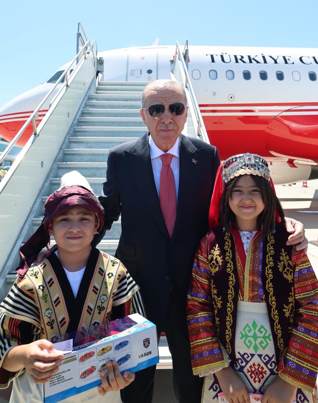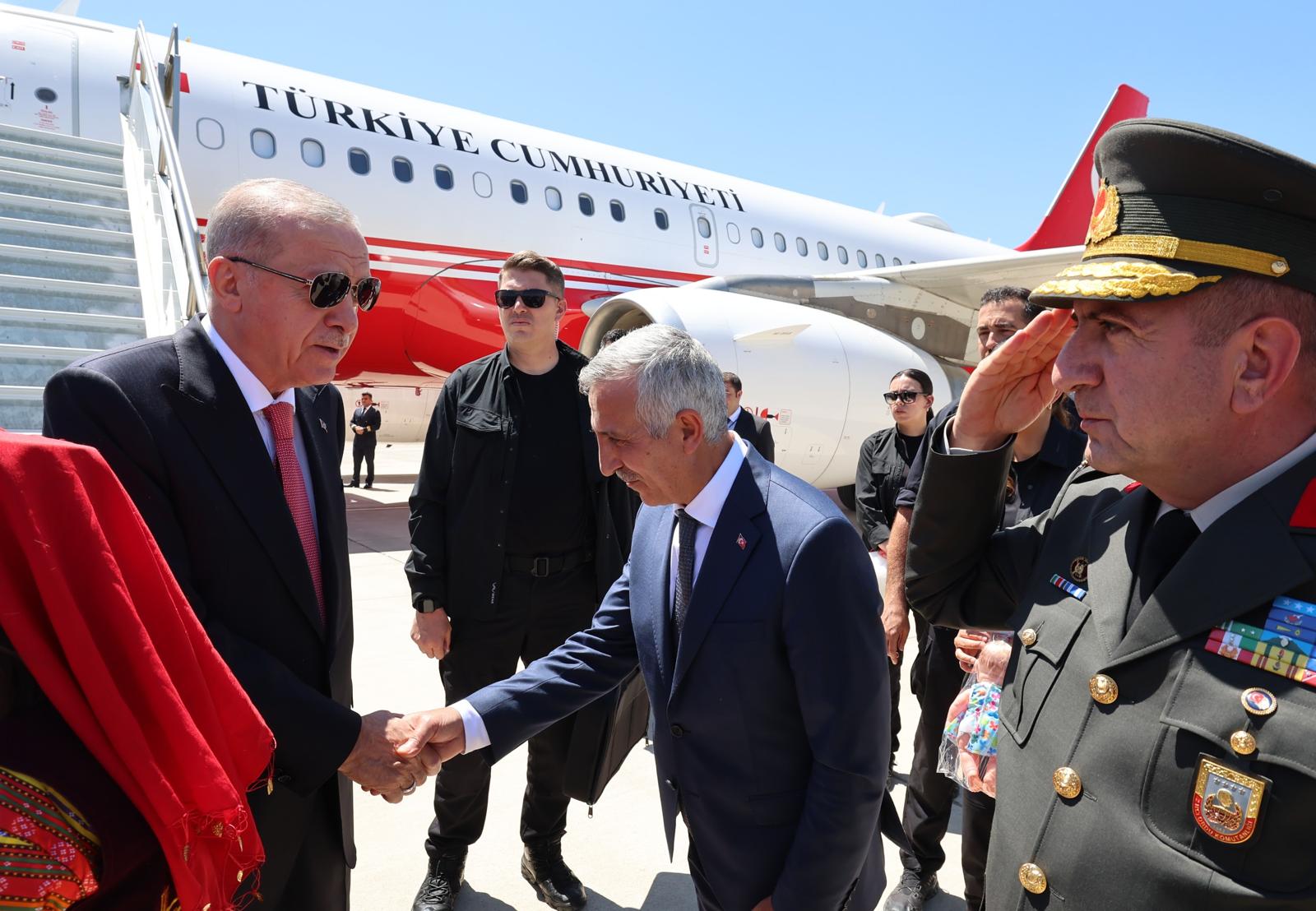 President Recep Tayyip Erdoğan met with President Ilham Aliyev of Azerbaijan, who is in Türkiye for the key delivery of the 250 thousandth post-quake house in the “Azerbaijan Neighborhood”, at Kahramanmaraş Airport.