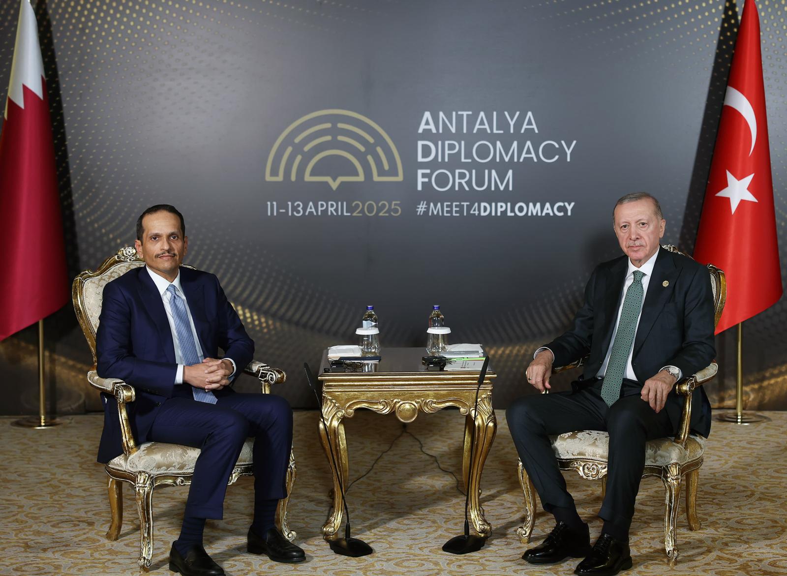 President Recep Tayyip Erdoğan met with Prime Minister and Minister of Foreign Affairs of Qatar, Sheikh Mohammed bin Abdulrahman bin Jassim Al Thani on the sidelines of the 4th Antalya Diplomacy Forum.