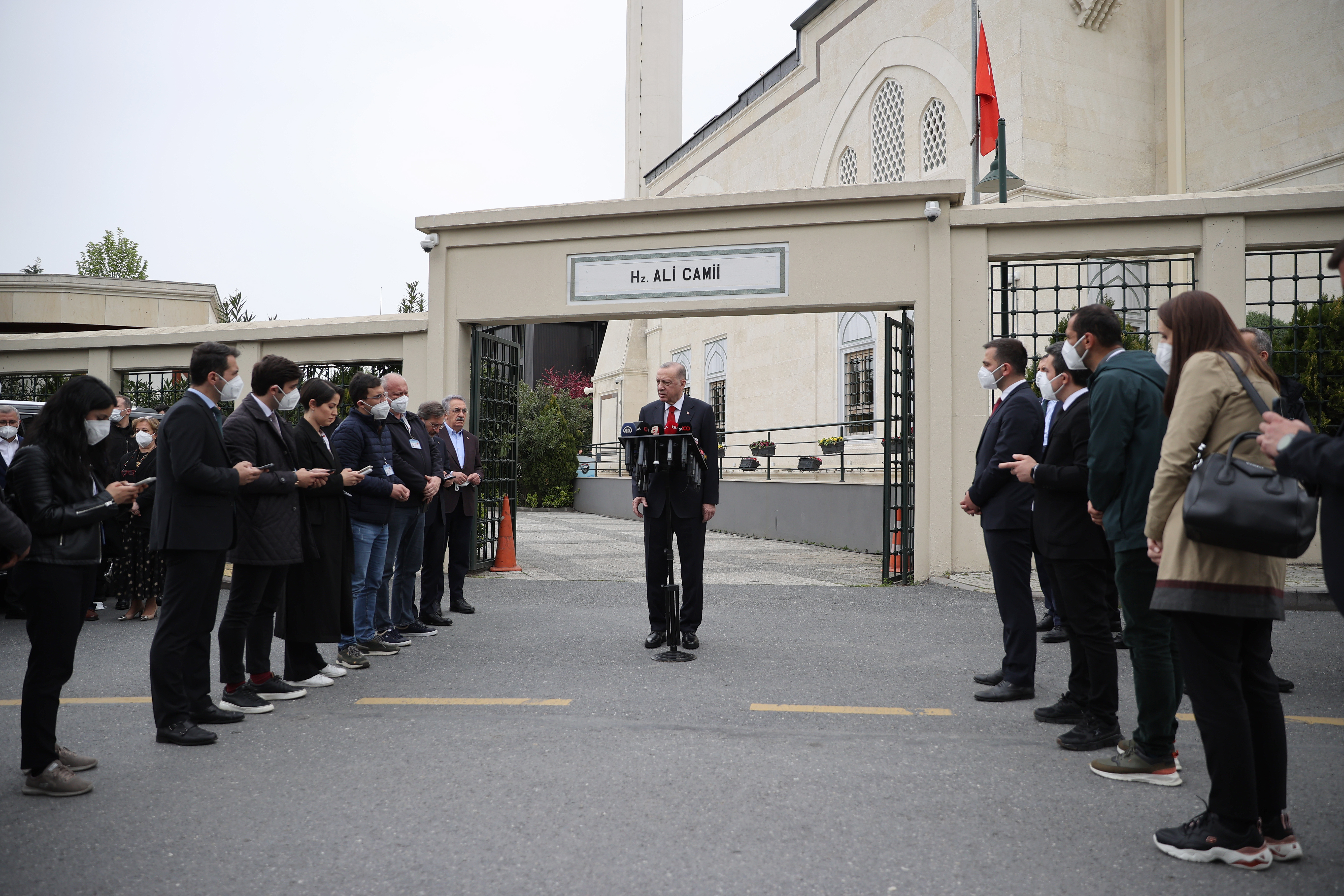 Following the prayer, President Erdoğan responded to reporters’ questions.