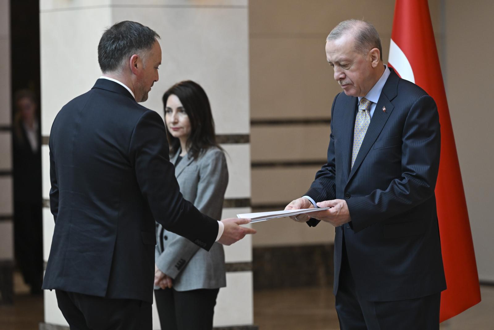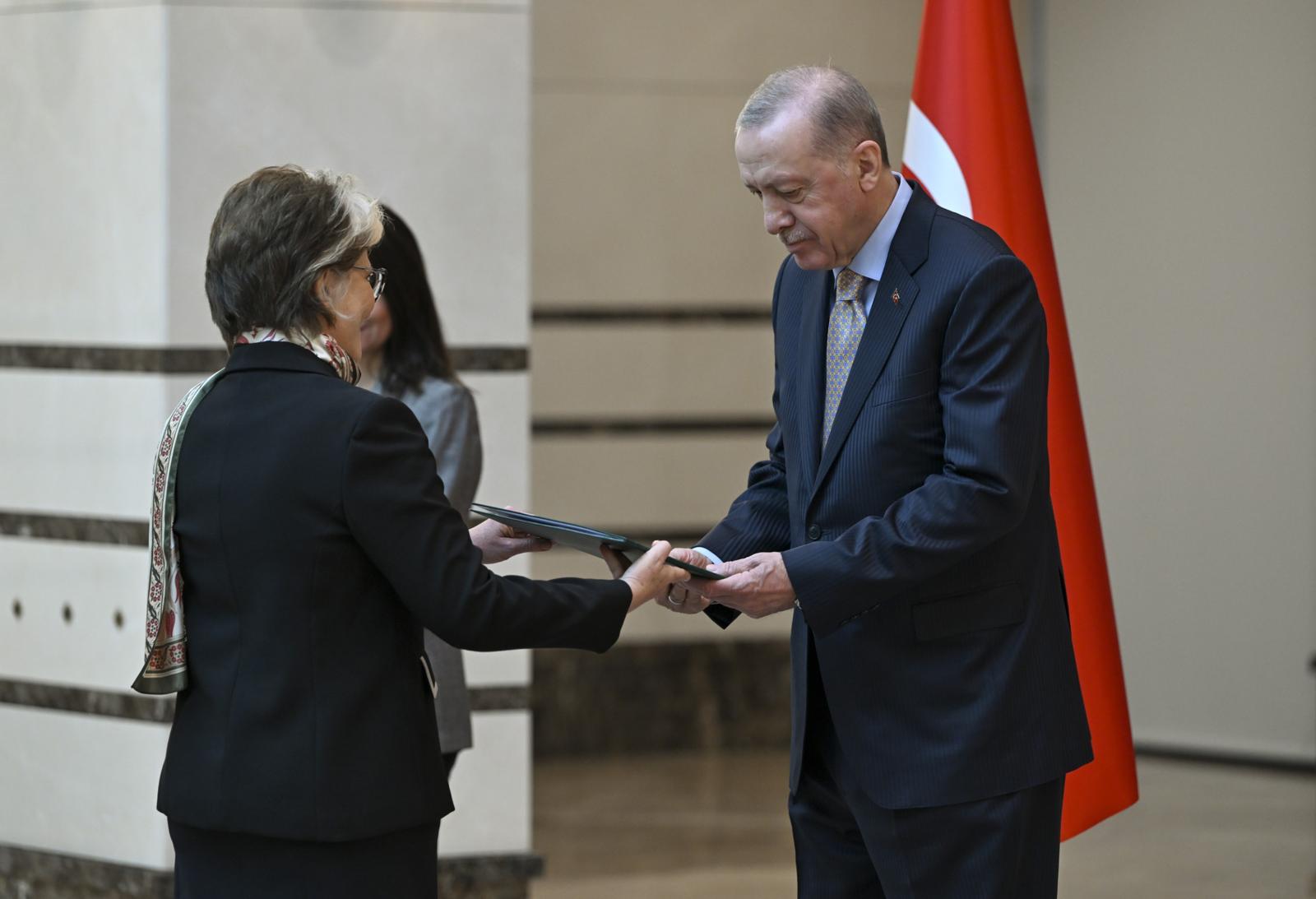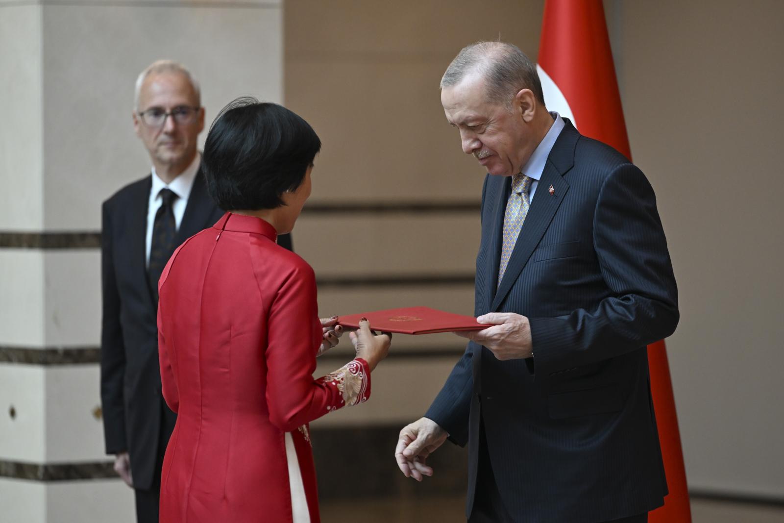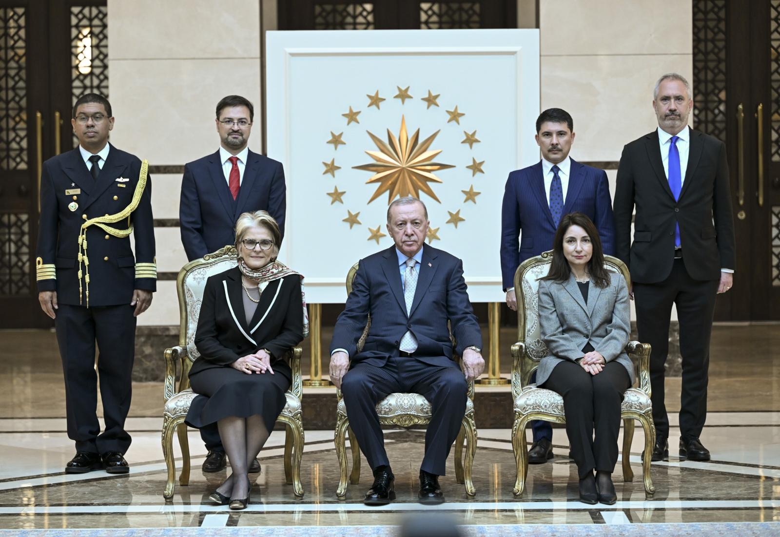 At the reception, Ambassador Anatoly Glaz of Belarus, Ambassador Gilda Motta Santos Neves of Brazil, Ambassador Pedro Vintimilla of Ecuador, Ambassador Archil Kalandia of Georgia and Ambassador Dang Thi Thu Ha of Vietnam presented their letters of credence to President Erdoğan.
