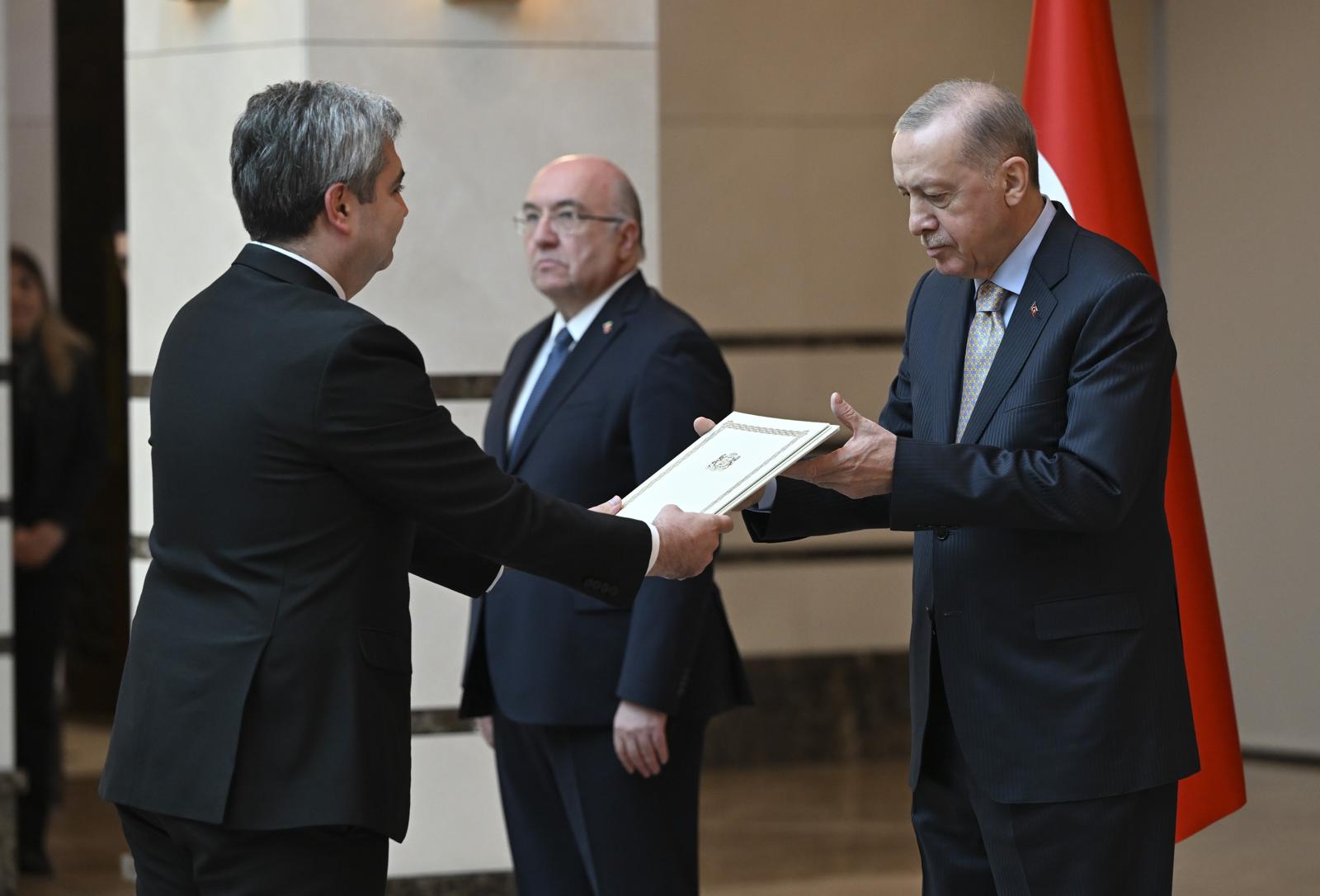 President Recep Tayyip Erdoğan received the ambassadors of Belarus, Brazil, Ecuador, Georgia and Vietnam at the Presidential Complex.