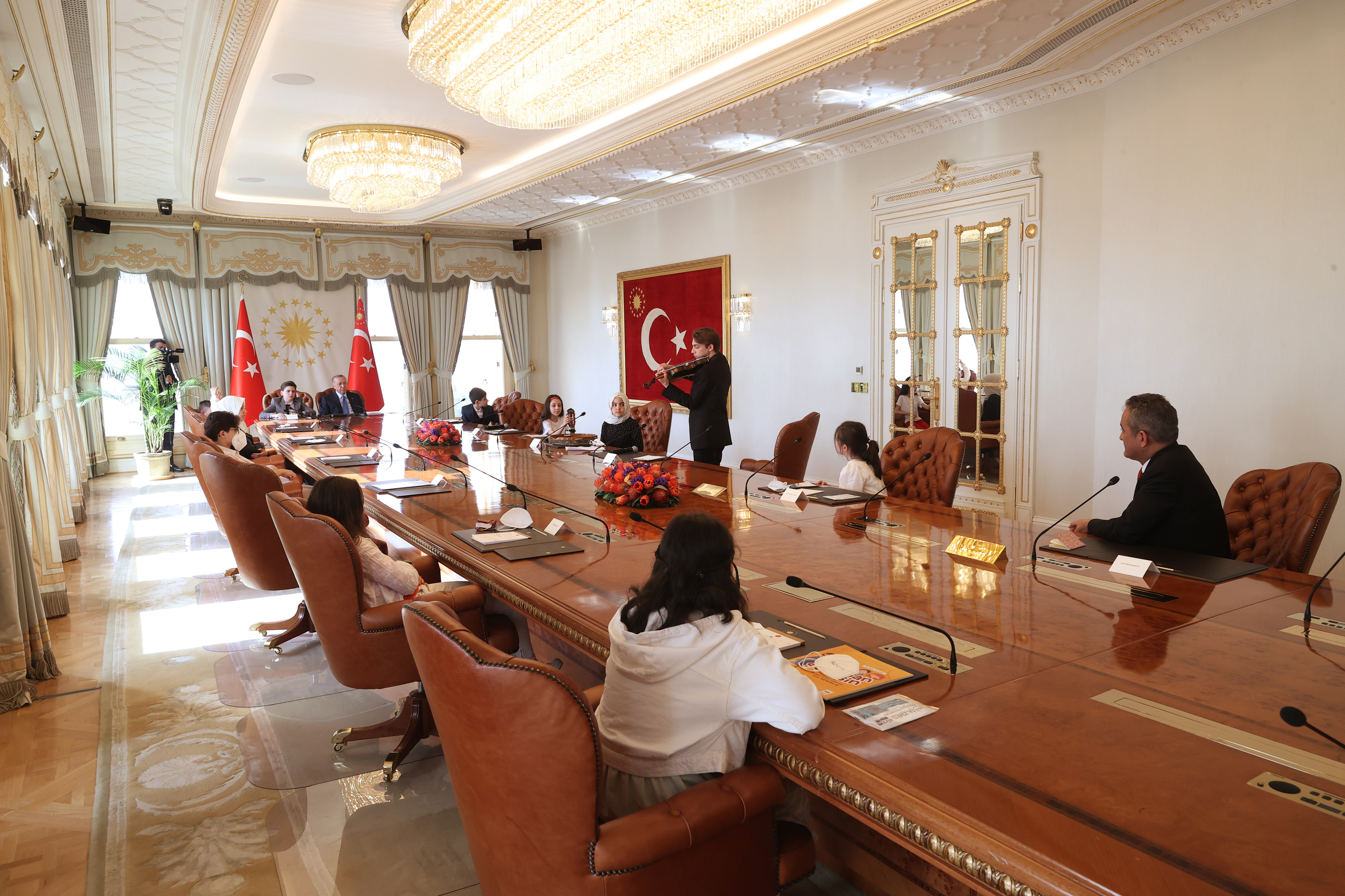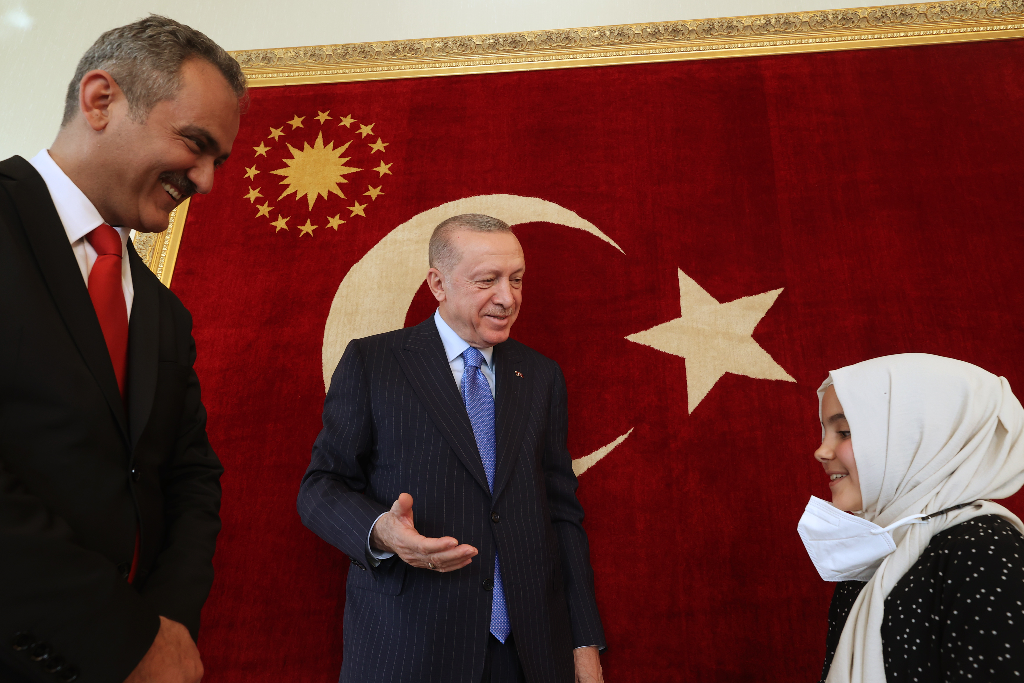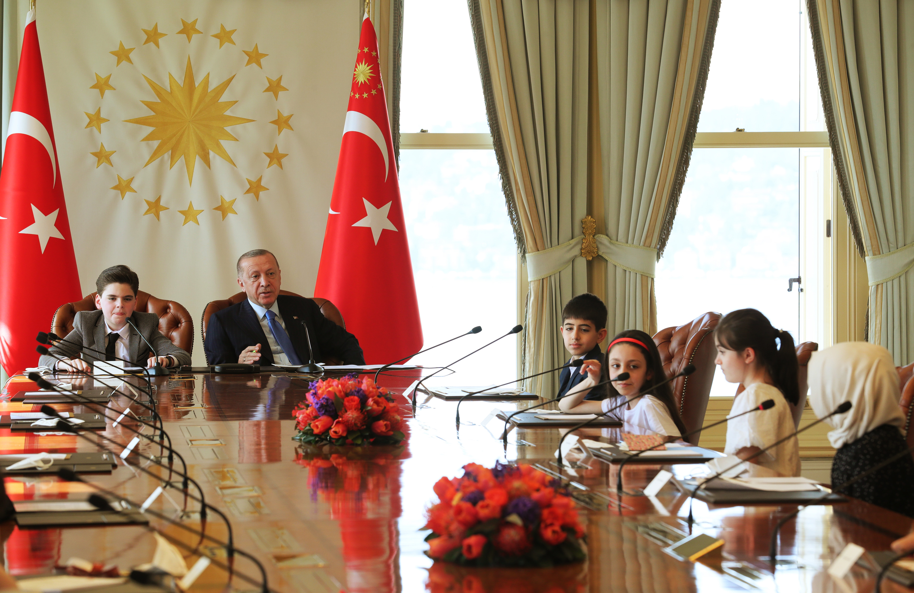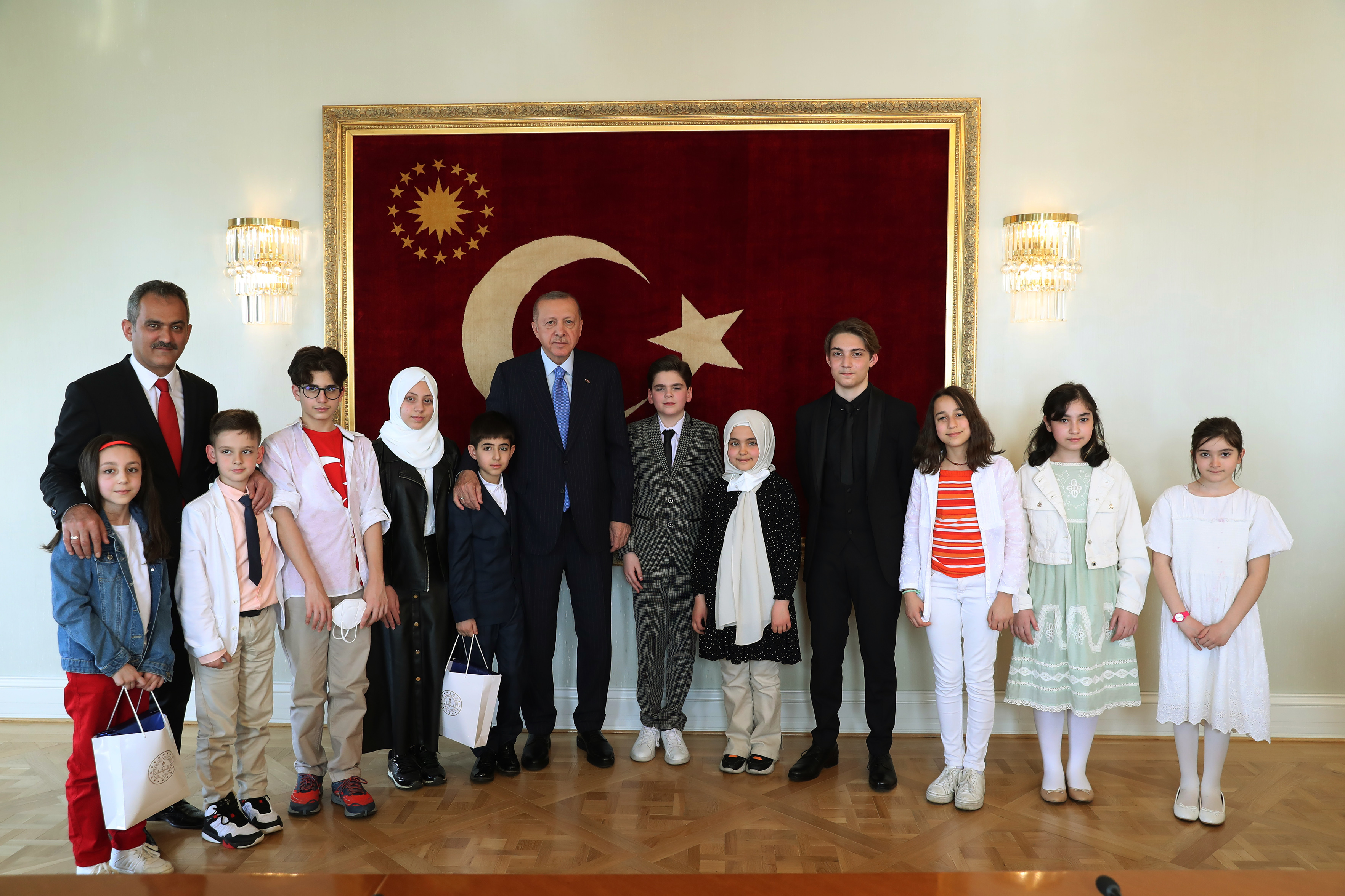 President Recep Tayyip Erdoğan received Minister of National Education Mahmut Özer and the students accompanying him at Vahdettin Mansion in Istanbul on the occasion of the April 23rd National Sovereignty and Children’s Day.
