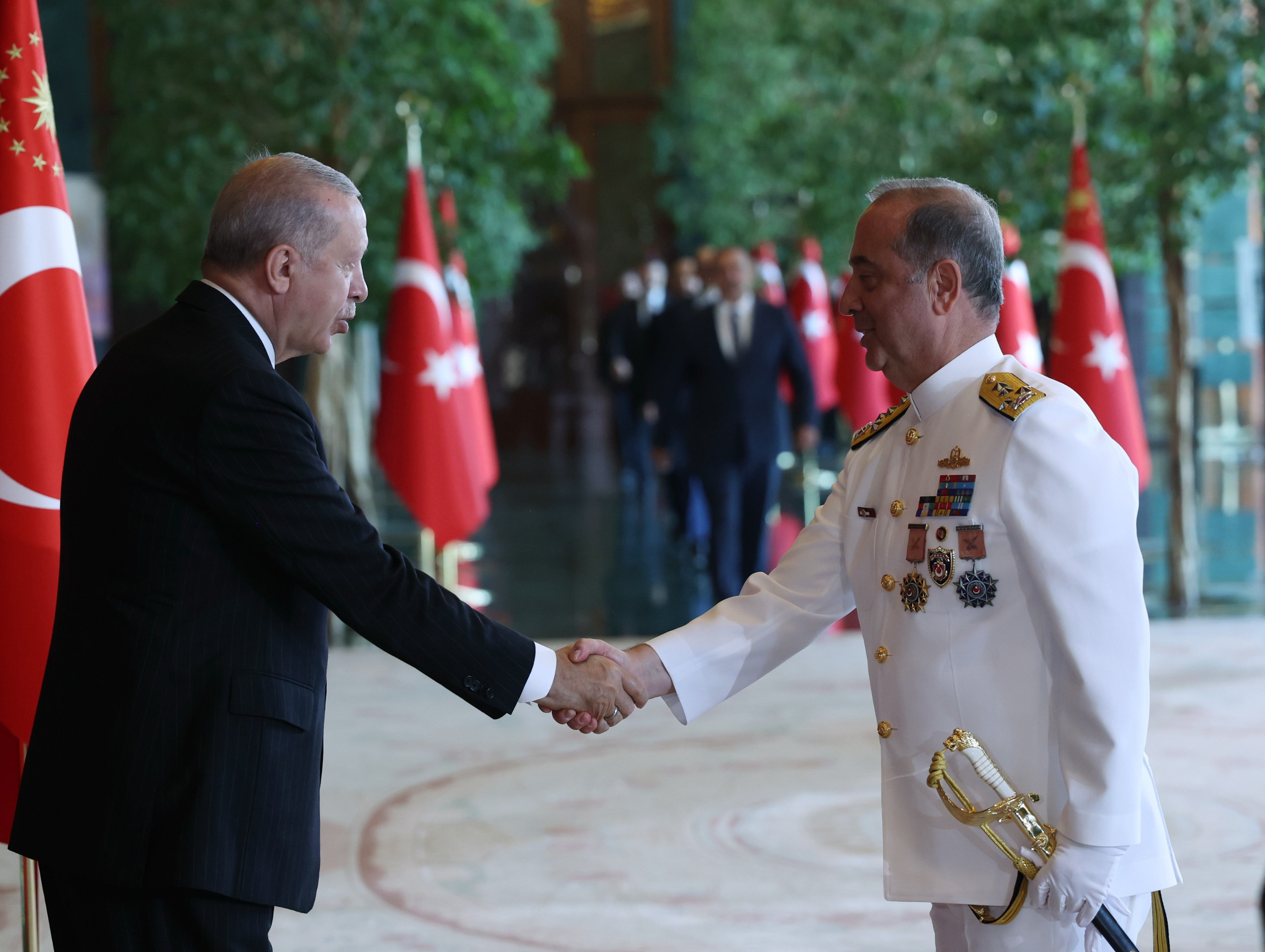 President Recep Tayyip Erdoğan received congratulations from top state officials and chiefs of foreign missions at the Presidential Complex on the occasion of the August 30 Victory Day.