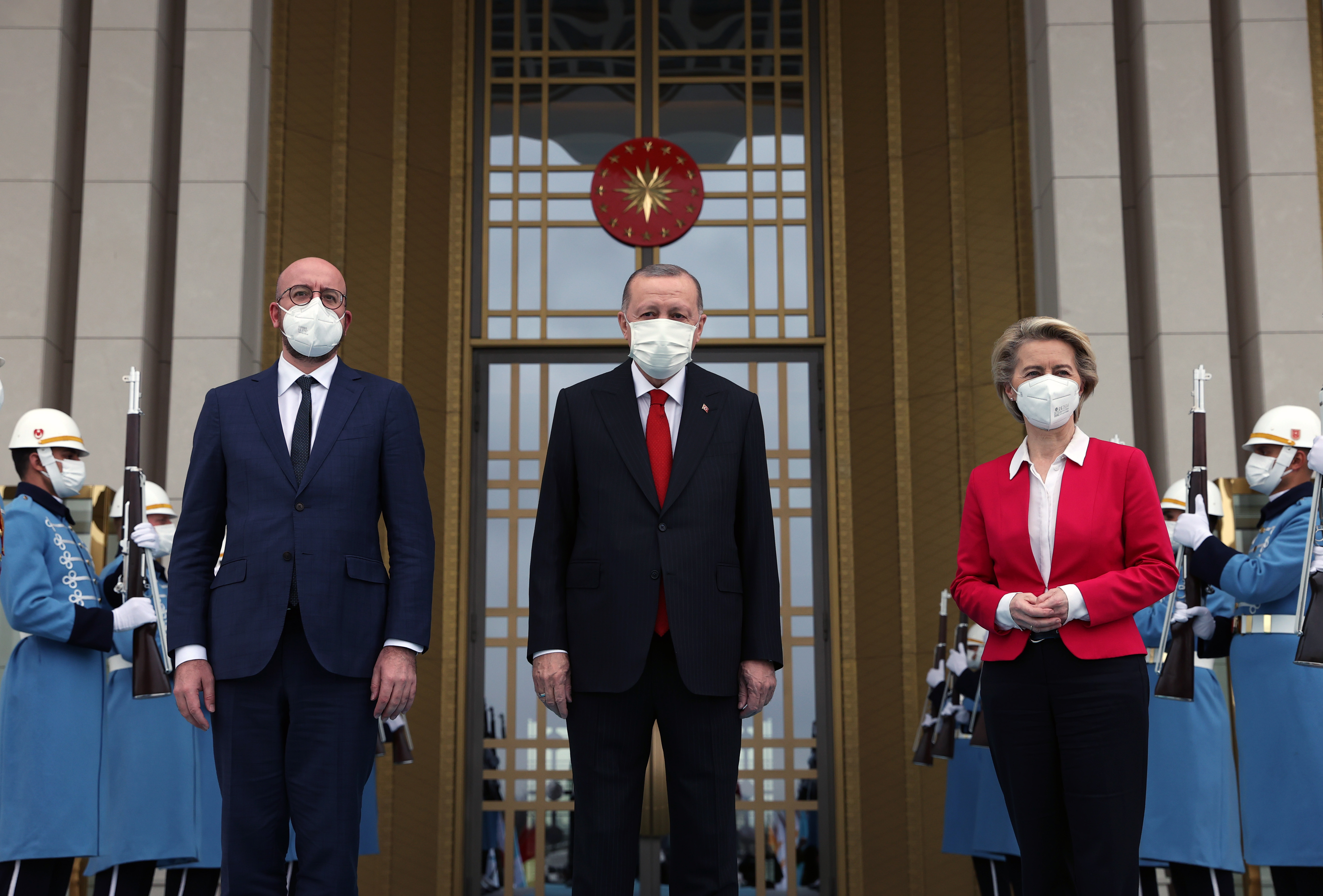 President Recep Tayyip Erdoğan received President of the European Council Charles Michel and President of the European Commission Ursula von der Leyen at the Presidential Complex.