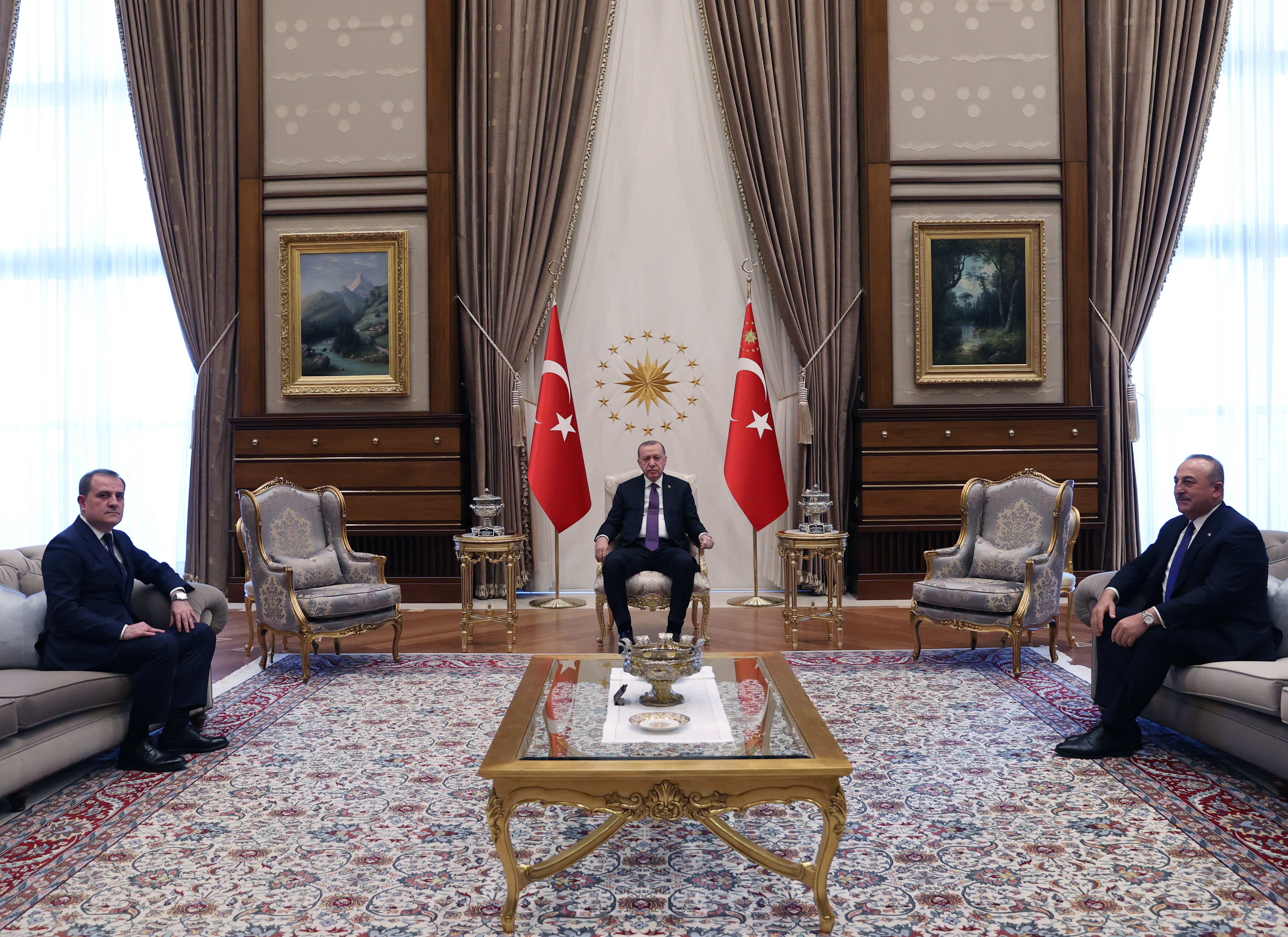 President Recep Tayyip Erdoğan received Minister of Foreign Affairs Jeyhun Bayramov of Azerbaijan at the Presidential Complex. At the reception that lasted half an hour, Minister of Foreign Affairs Mevlüt Çavuşoğlu was also present.