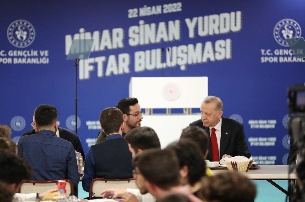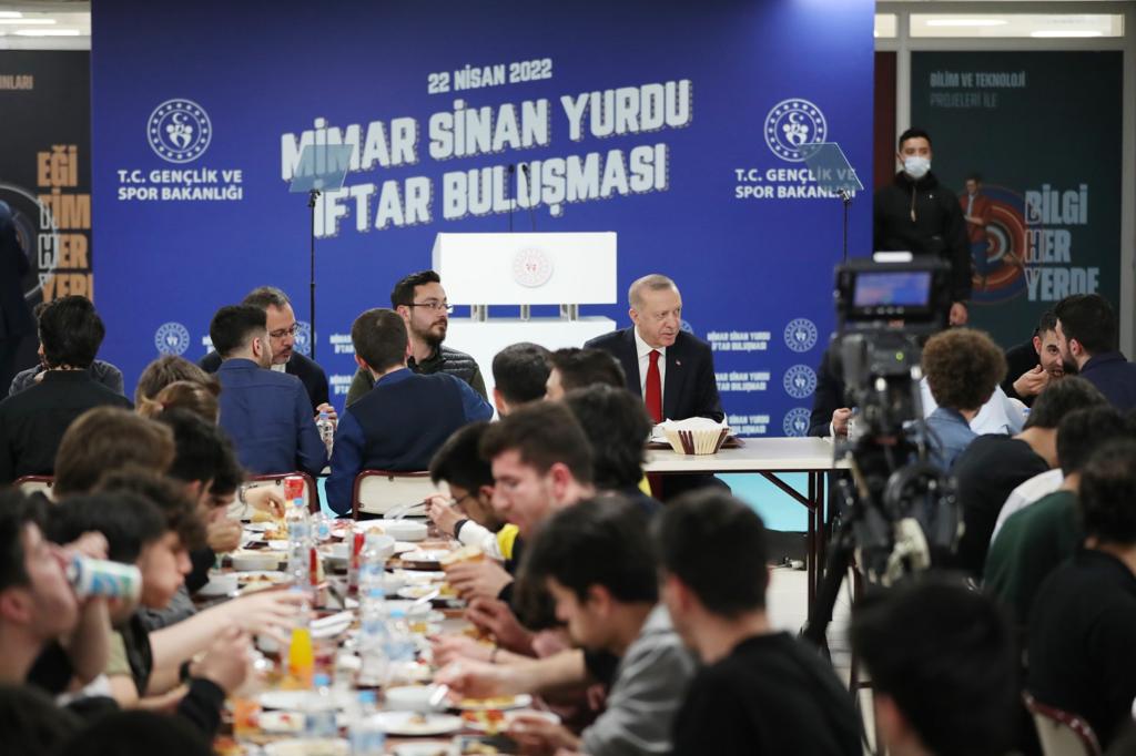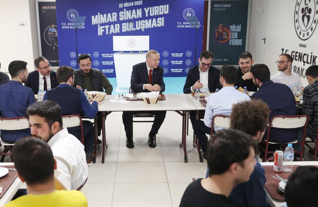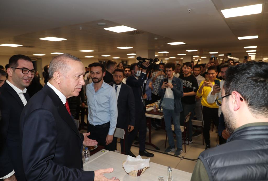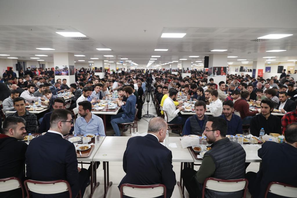 President Recep Tayyip Erdoğan shared an iftar dinner with students at a dormitory in Istanbul.