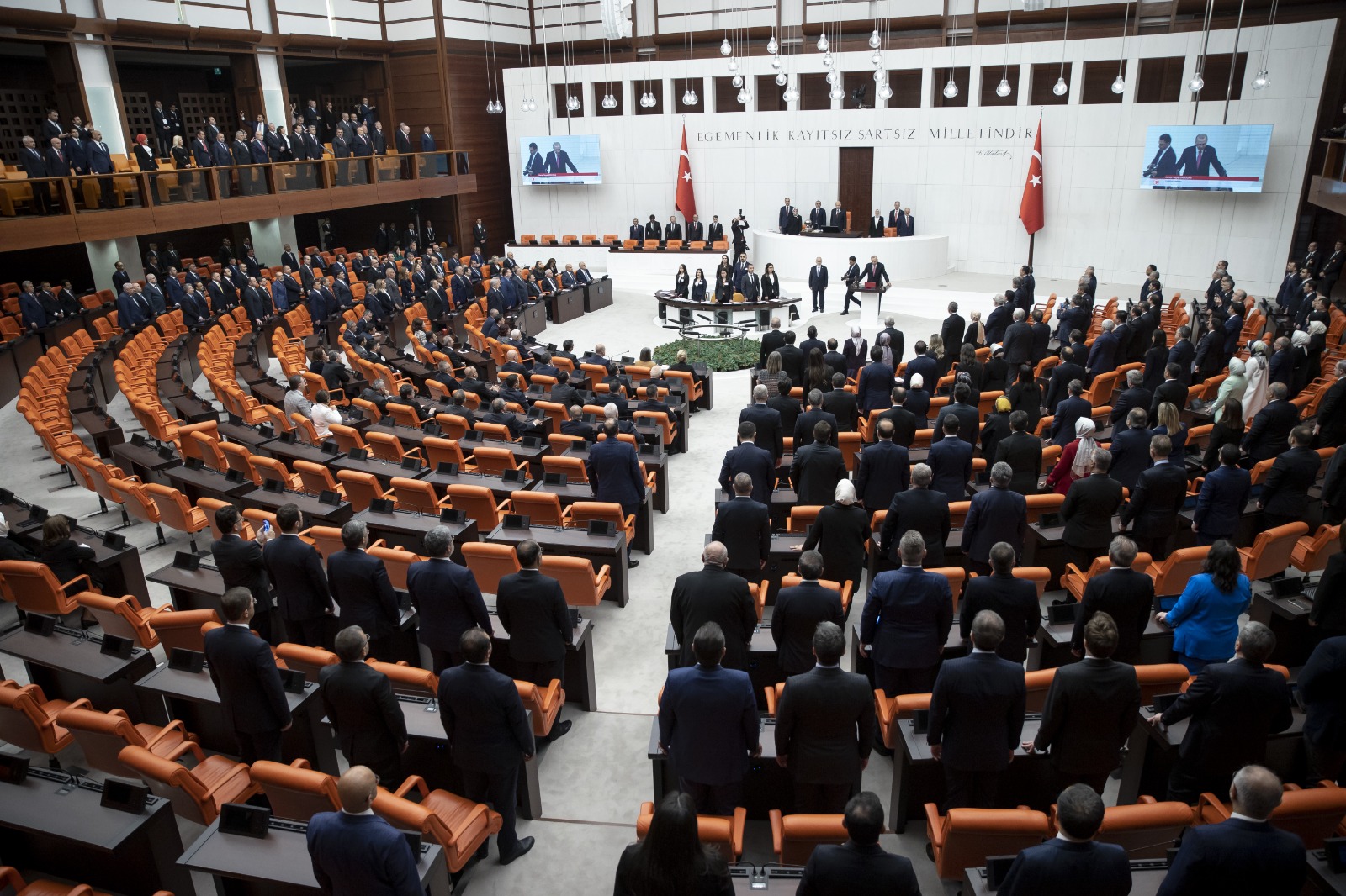 Afterwards, President Erdoğan, MPs and invitees sung the Turkish national anthem, the Independence March.