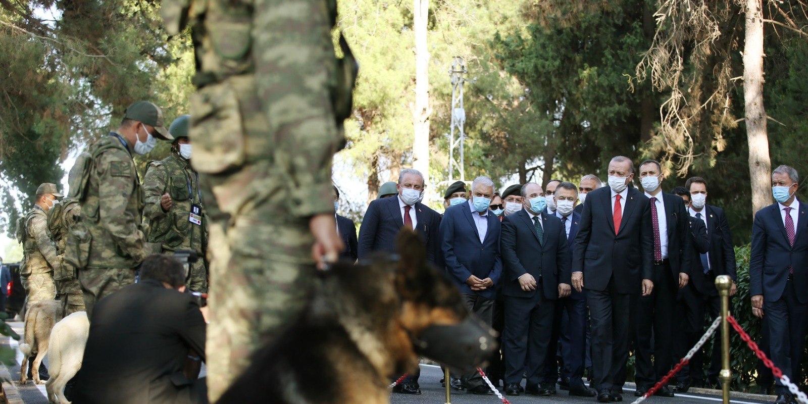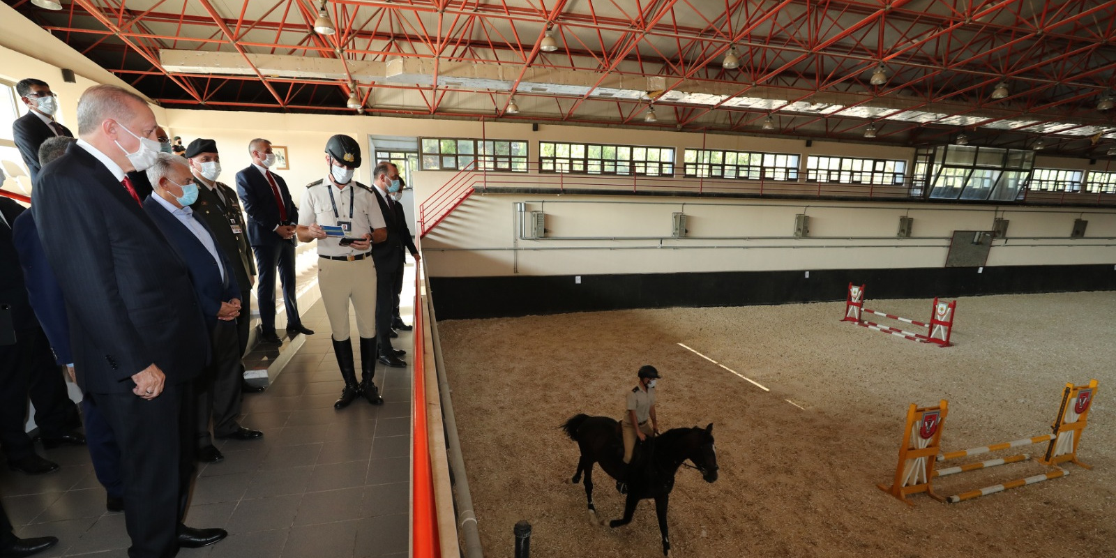 After the helicopter landed, Erdoğan visited the Military Veterinary School and Training Center Command in Gemlik, the most advanced dog and horse training center of the Turkish Armed Forces (TAF), located nearby the ceremonial ground.