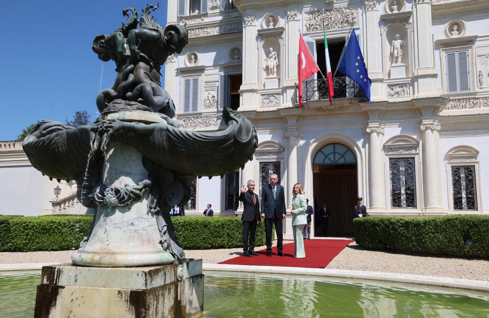 President Recep Tayyip Erdoğan, who is in Rome for the 4th Türkiye-Italy Intergovernmental Summit, was welcomed with an official ceremony by President Giorgia Meloni of the Council of Ministers of Italy.