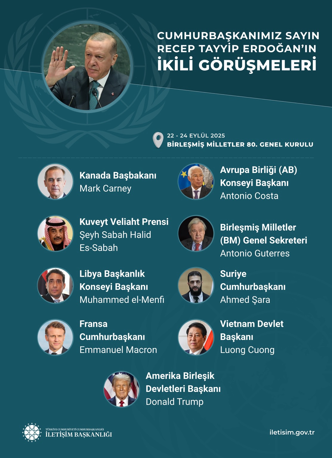 President Recep Tayyip Erdoğan, who returned to Türkiye after his meetings, attended a number of gatherings, including the 80th Session of the UN General Assembly in the United States, and had significant discussions with heads of state and high-ranking officials from international organisations.