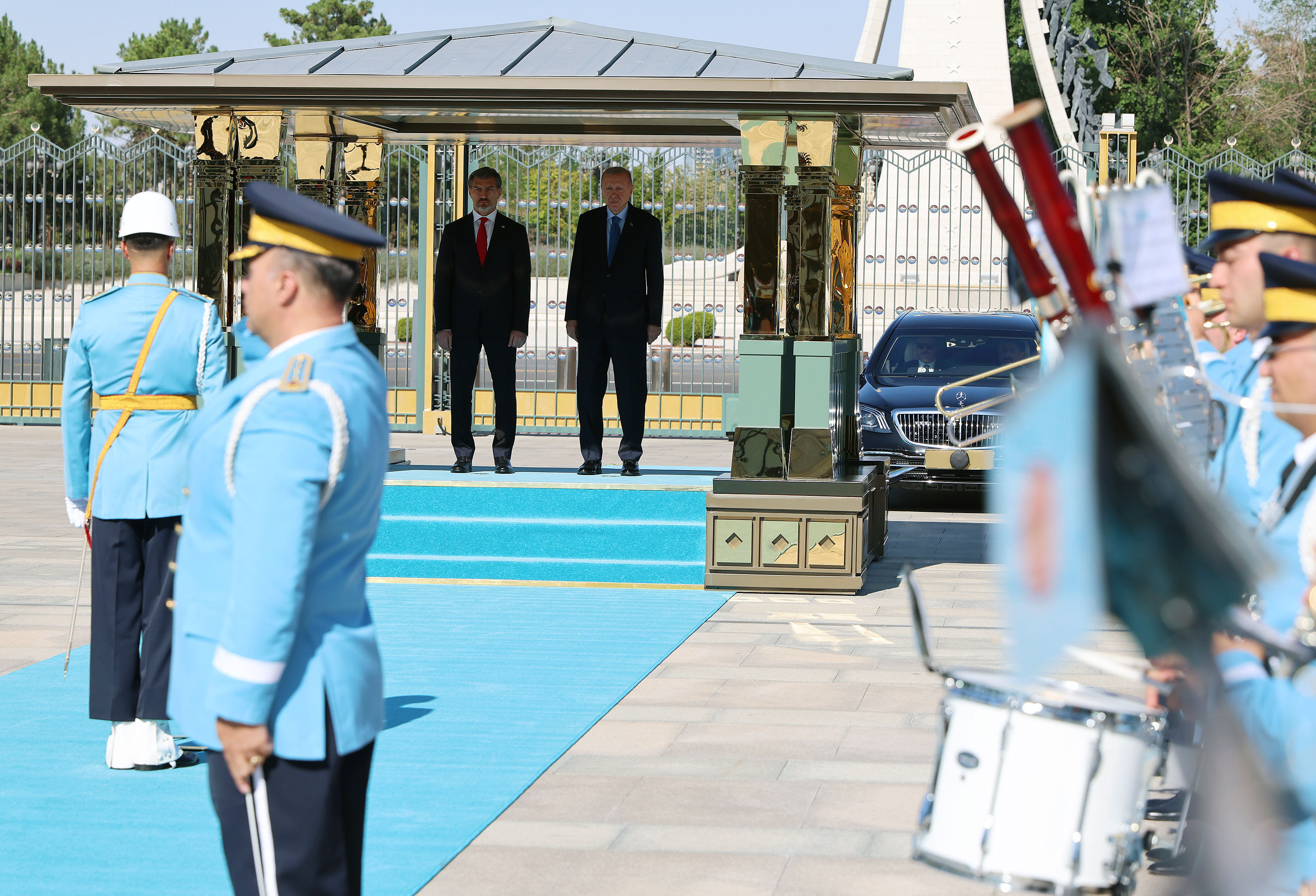 Once the two leaders arrived at the ceremonial ground, the national anthems of Türkiye and Georgia were played, and President Kavelashvili of Georgia inspected the guard of honor.