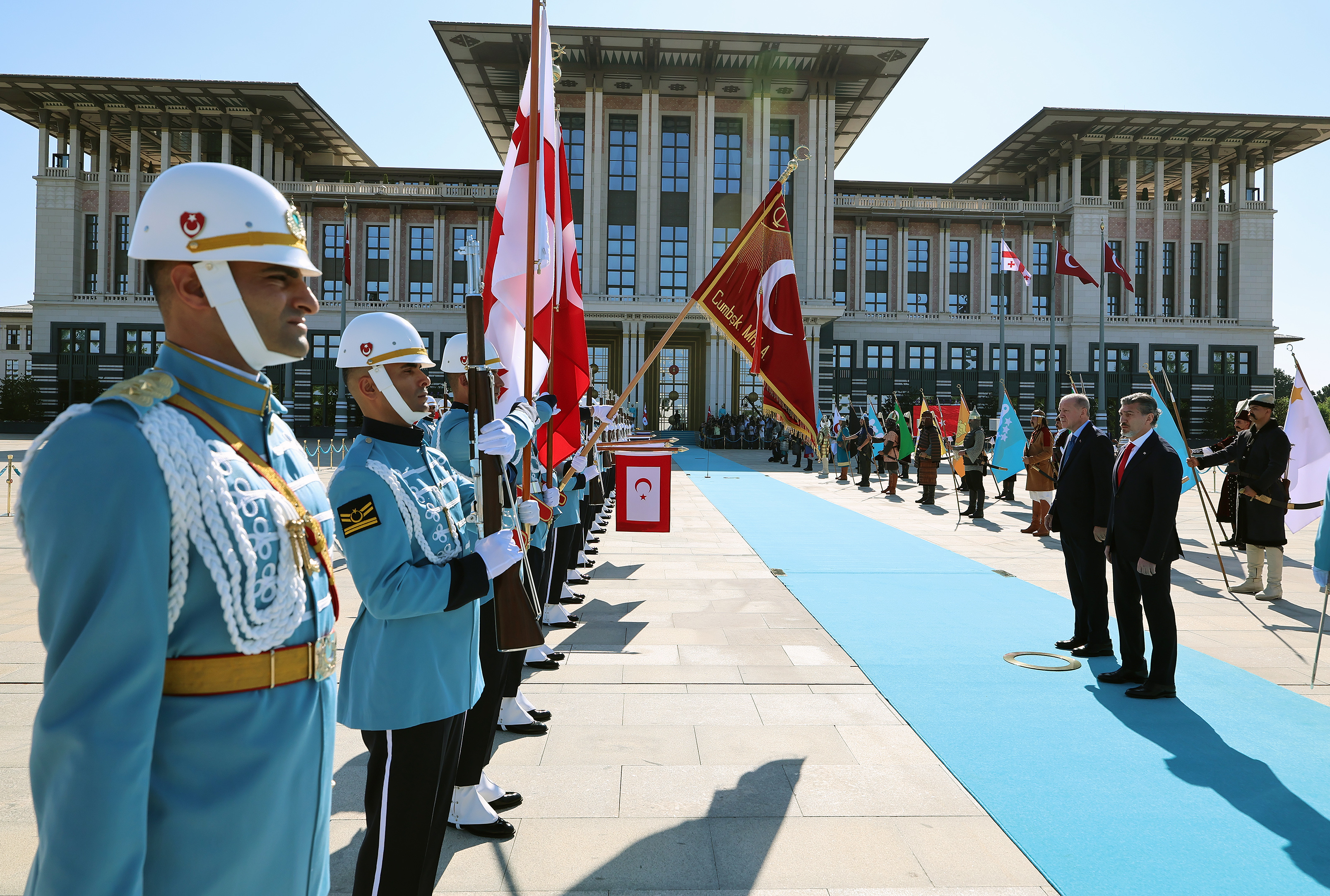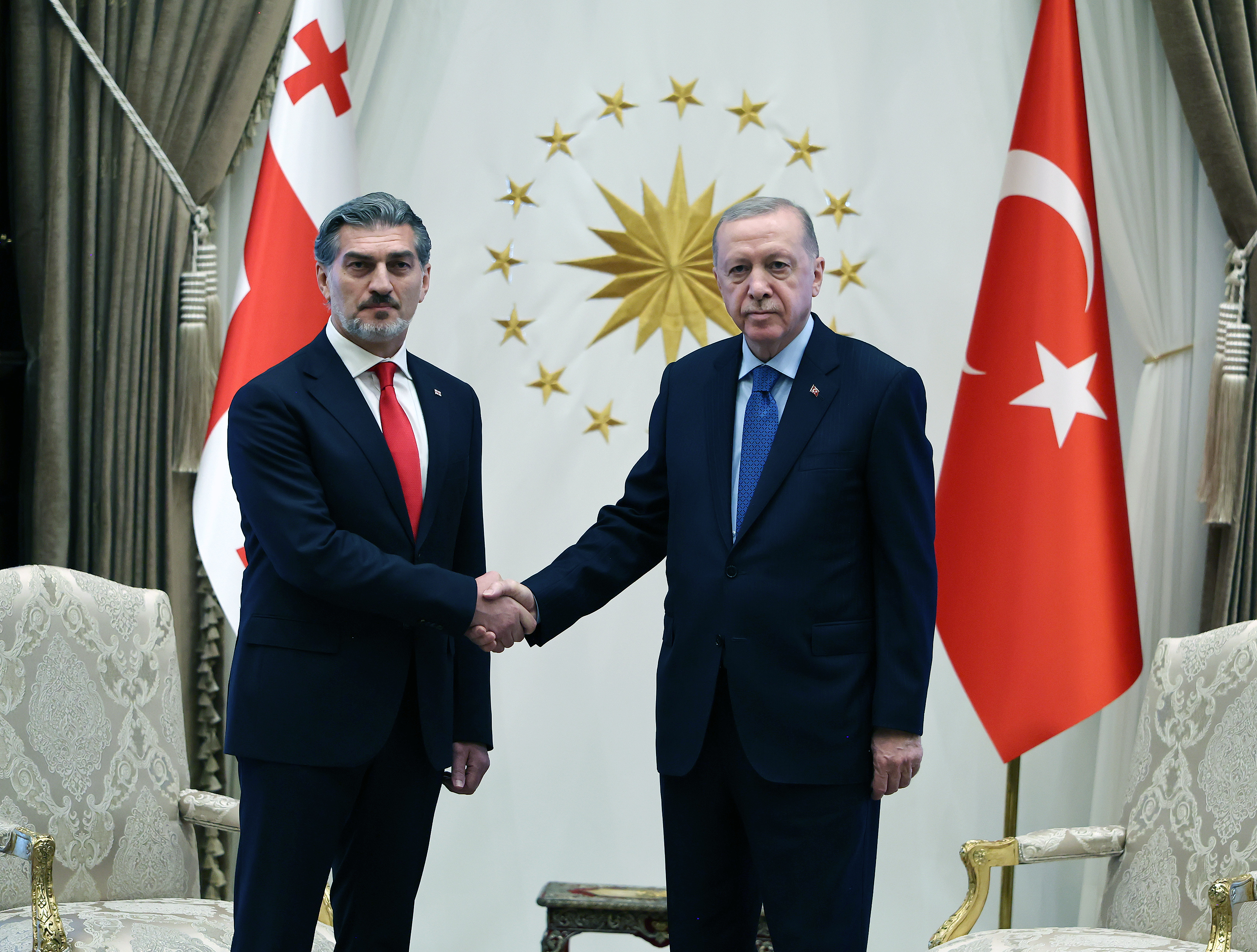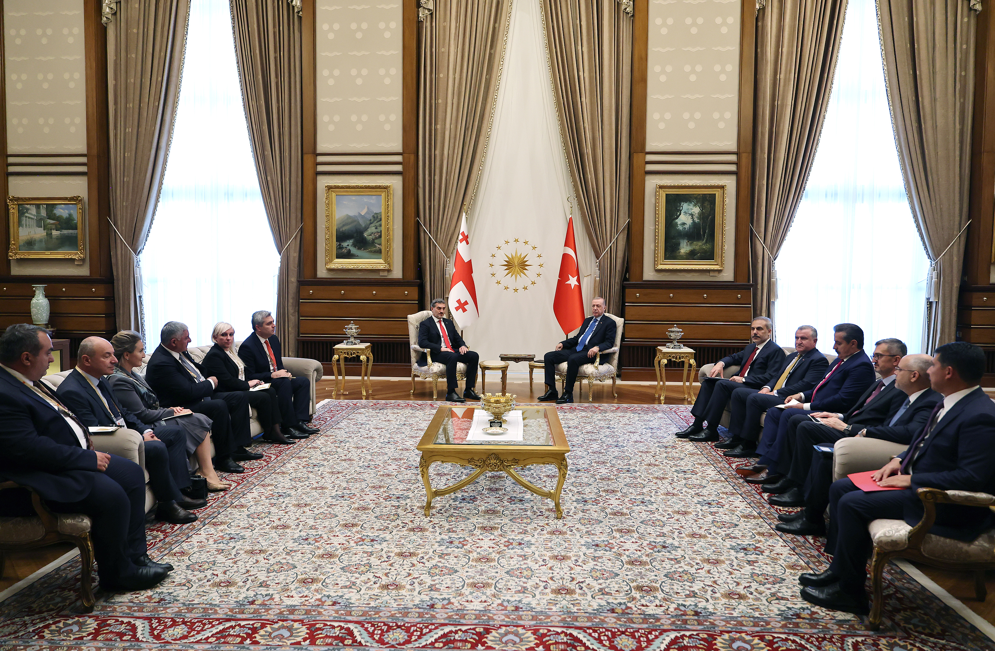 Following the introduction of the delegations, President Erdoğan and President Kavelashvili posed for the press and headed inside for their bilateral meeting.