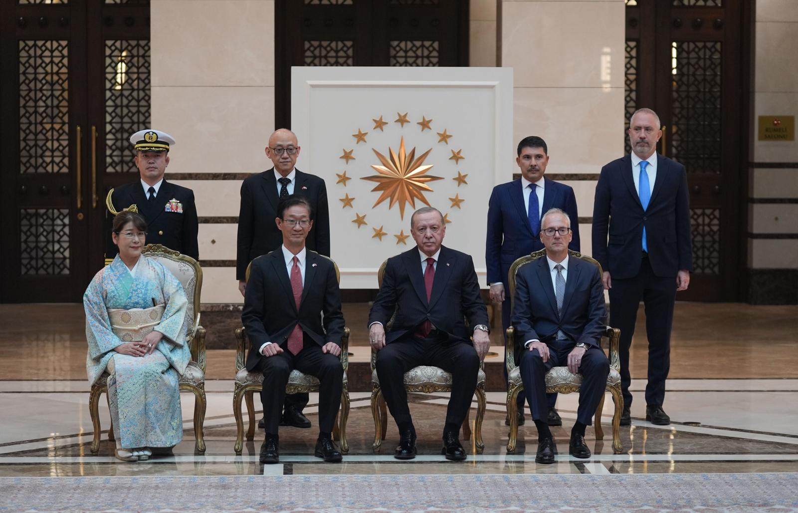 President Recep Tayyip Erdoğan received the Ambassadors of Lebanon, Ghana, Palestine, Guniea and Japan at the Presidential Complex.