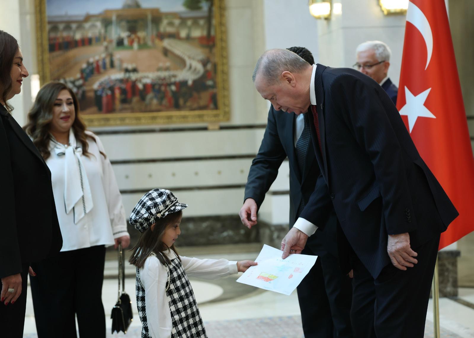 During the presentation, the daughter of Ambassador Anouti of Lebanon gifted the picture she drew to President Erdoğan.