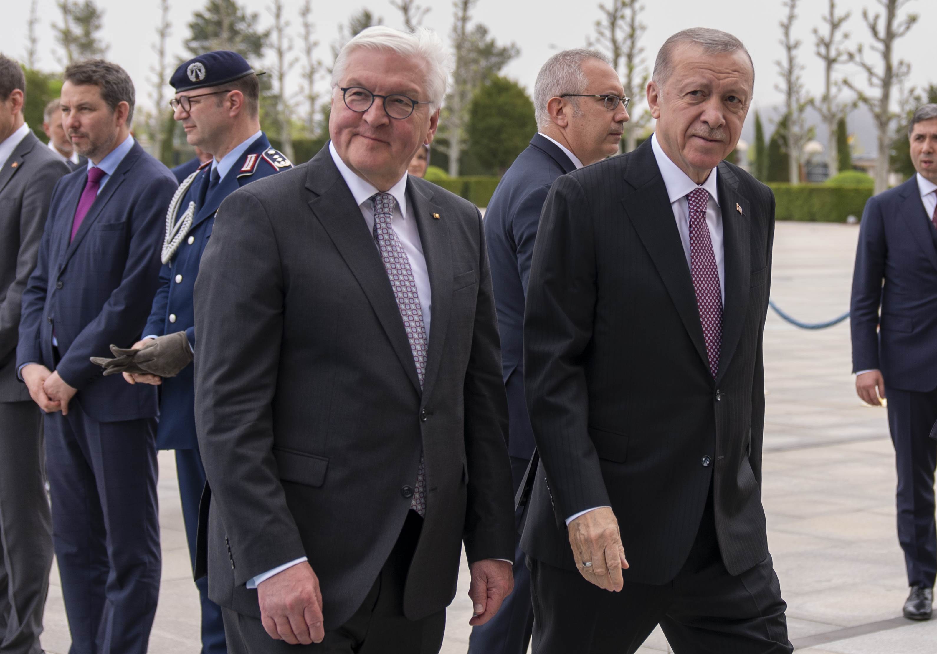 Once the two leaders arrived at the ceremonial ground, the national anthems of Türkiye and Germany were played, and President Steinmeier inspected the guard of honor.