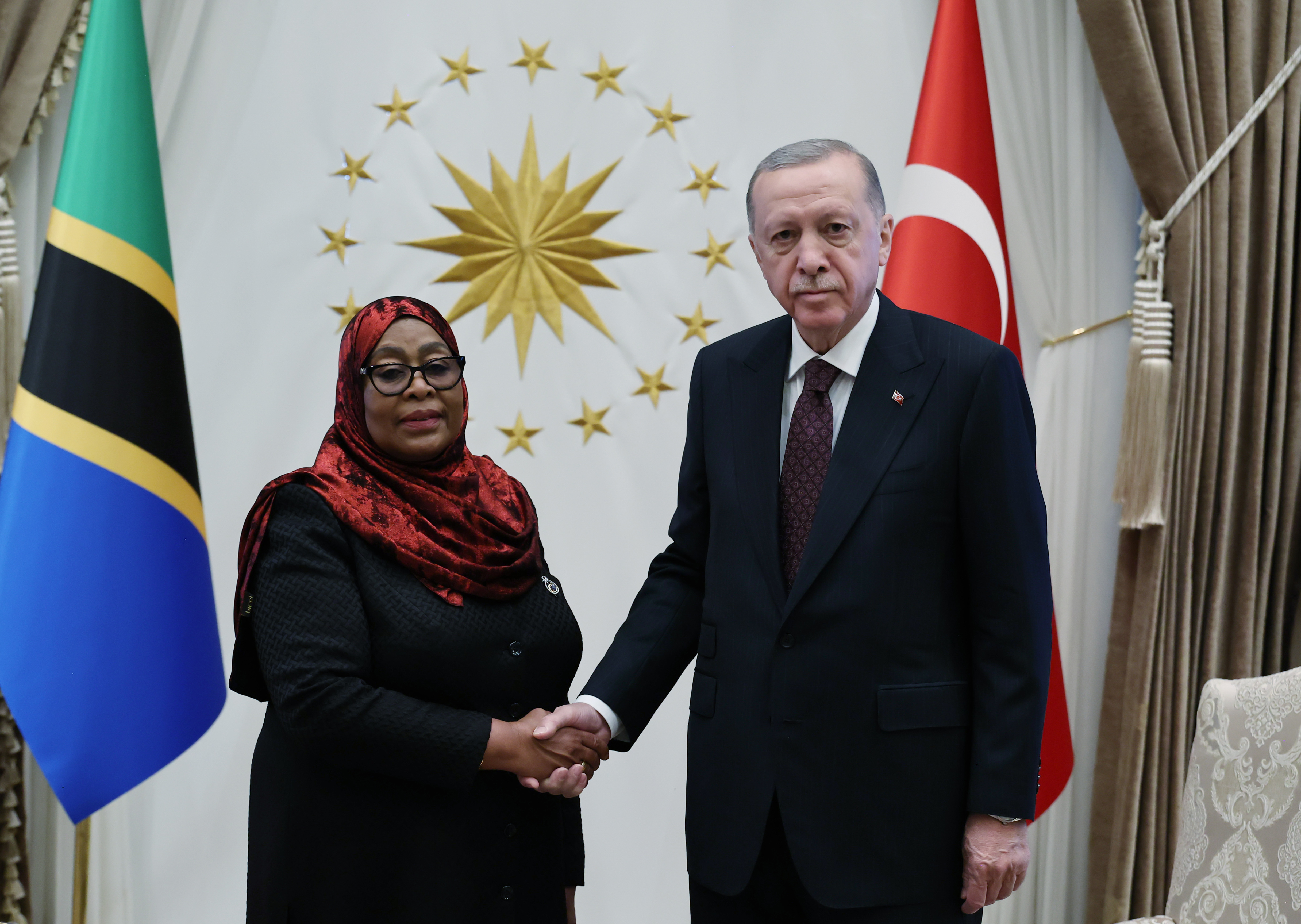 President Recep Tayyip Erdoğan welcomed President Samia Suluhu Hassan of the United Republic of Tanzania, who is paying an official visit to Türkiye, with an official ceremony at the Presidential Complex.