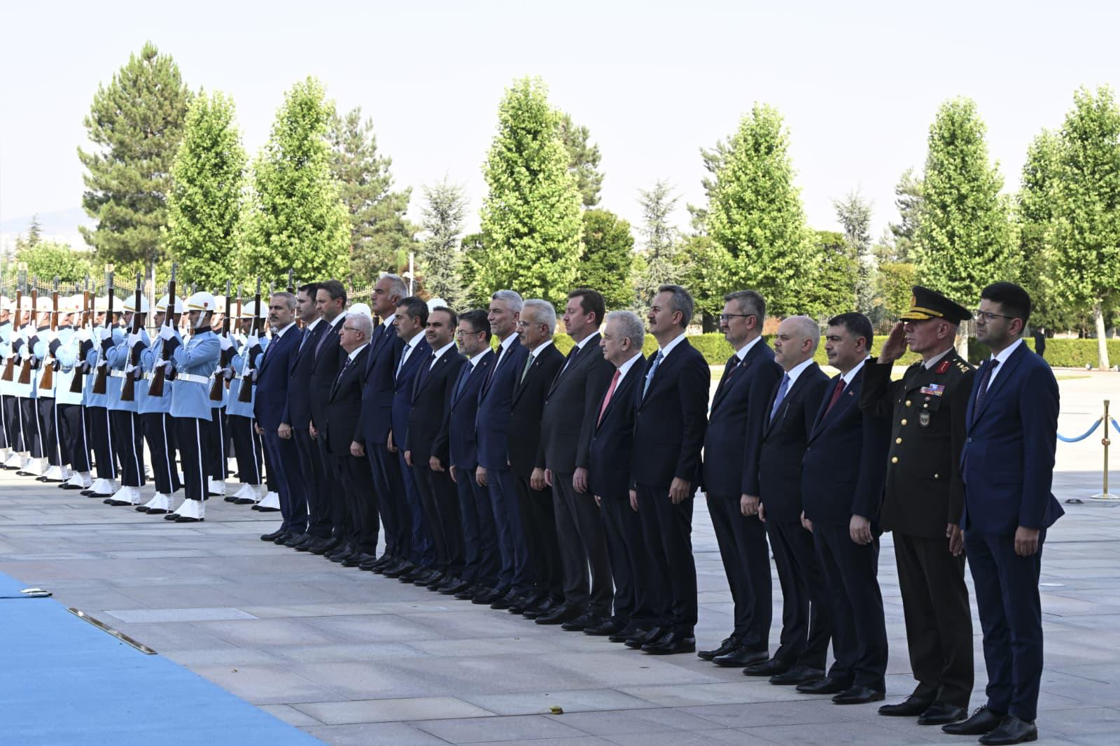 Following the introduction of the delegations, the two leaders posed for the press and headed inside for their bilateral meeting and the fifth meeting of the Türkiye-Kazakhstan High-Level Strategic Cooperation Council.