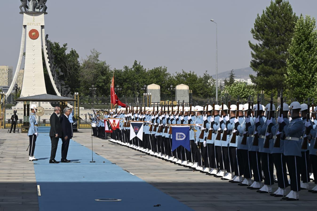 Once the two leaders arrived at the ceremonial ground, the national anthems of Türkiye and Kazakhstan were played, and President Tokayev of Kazakhstan inspected the guard of honor.