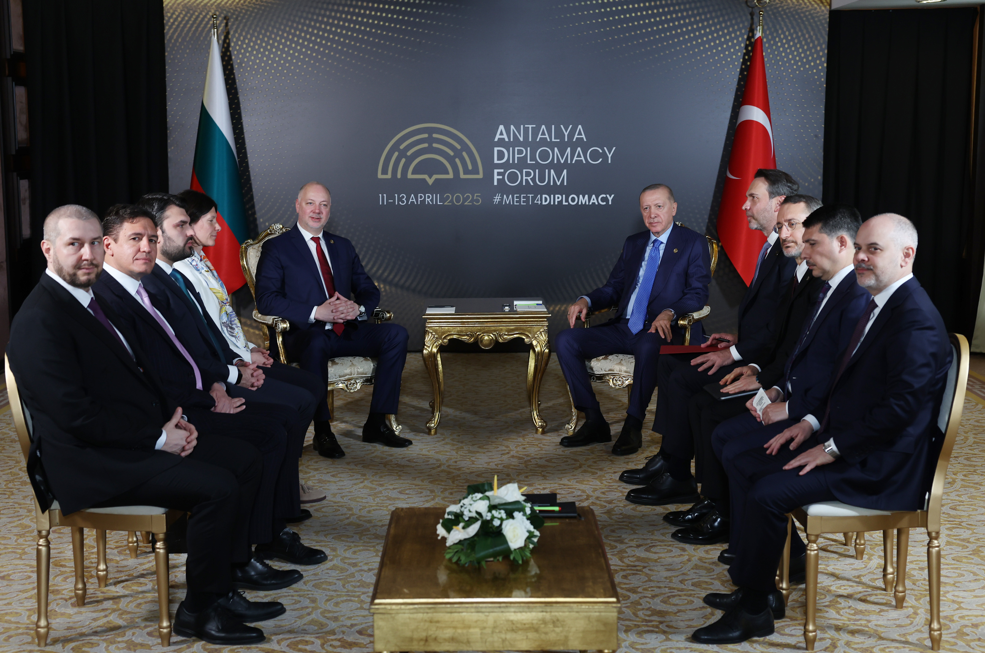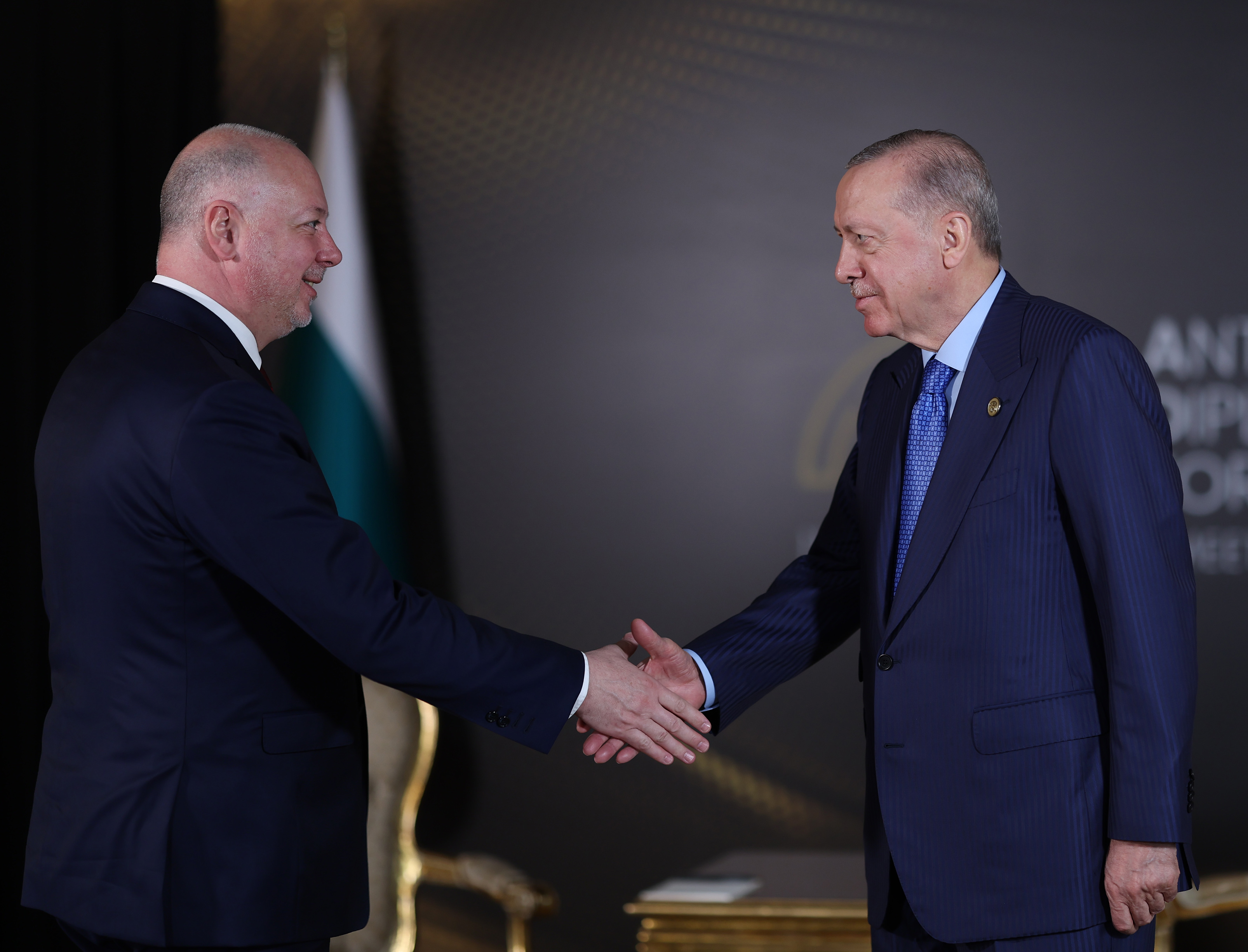 President Recep Tayyip Erdoğan met with Prime Minister Rossen Jeliazkov of Bulgaria on the sidelines of the 4th Antalya Diplomacy Forum.
