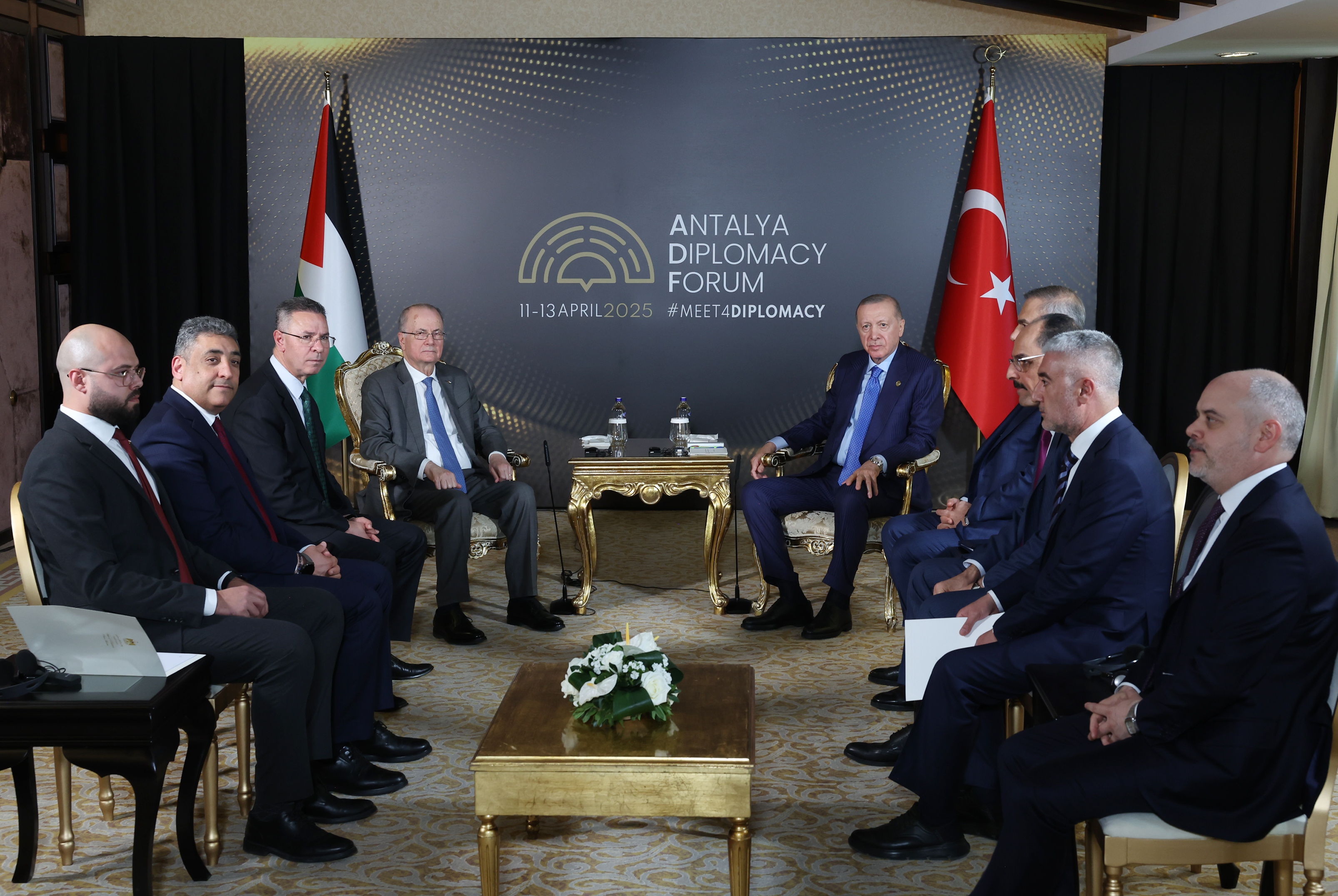 President Recep Tayyip Erdoğan met with Prime Minister and Minister of Foreign Affairs and Expatriates of Palestine Mohammed Mustafa on the sidelines of the 4th Antalya Diplomacy Forum.
