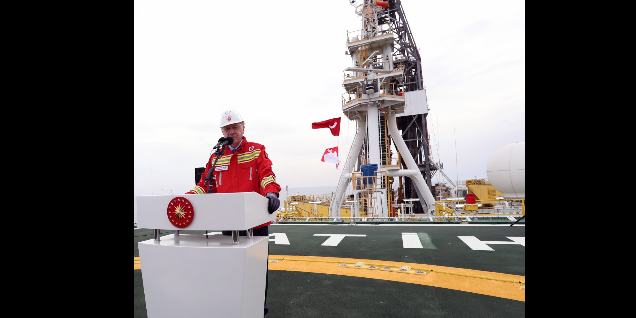 President Recep Tayyip Erdoğan made a speech following his inspections on board the Fatih drilling vessel, which is currently on an exploration mission in the Black Sea.