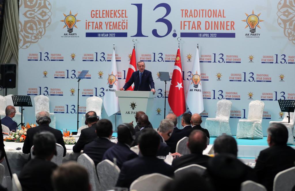 Addressing ambassadors during the iftar, President Erdoğan said: “We are first humans and then an African, Asian, European, or American. No matter where we live, no matter what our faith, culture, language, or skin color is, we are all members of the 8.5-billion great family of humanity. And as the members of the family of humanity, we are responsible not only to one another, but also to our children and future generations. None of us can afford to retreat into our own ivory tower and turn a blind eye to the problems, difficulties, or disasters others have been going through.”