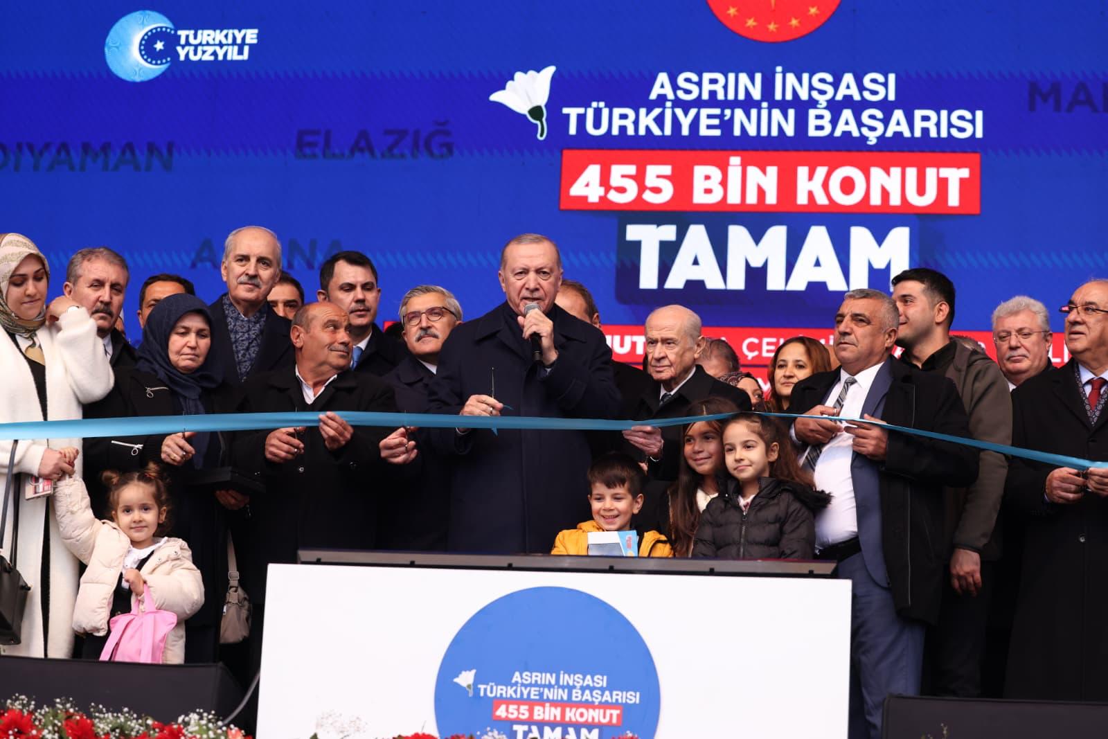 President Recep Tayyip Erdoğan spoke at the Ceremony for the Drawing and Key Delivery of the 455 Thousandth Post-Disaster House and the Opening of the Newly-Made Investments in Hatay.