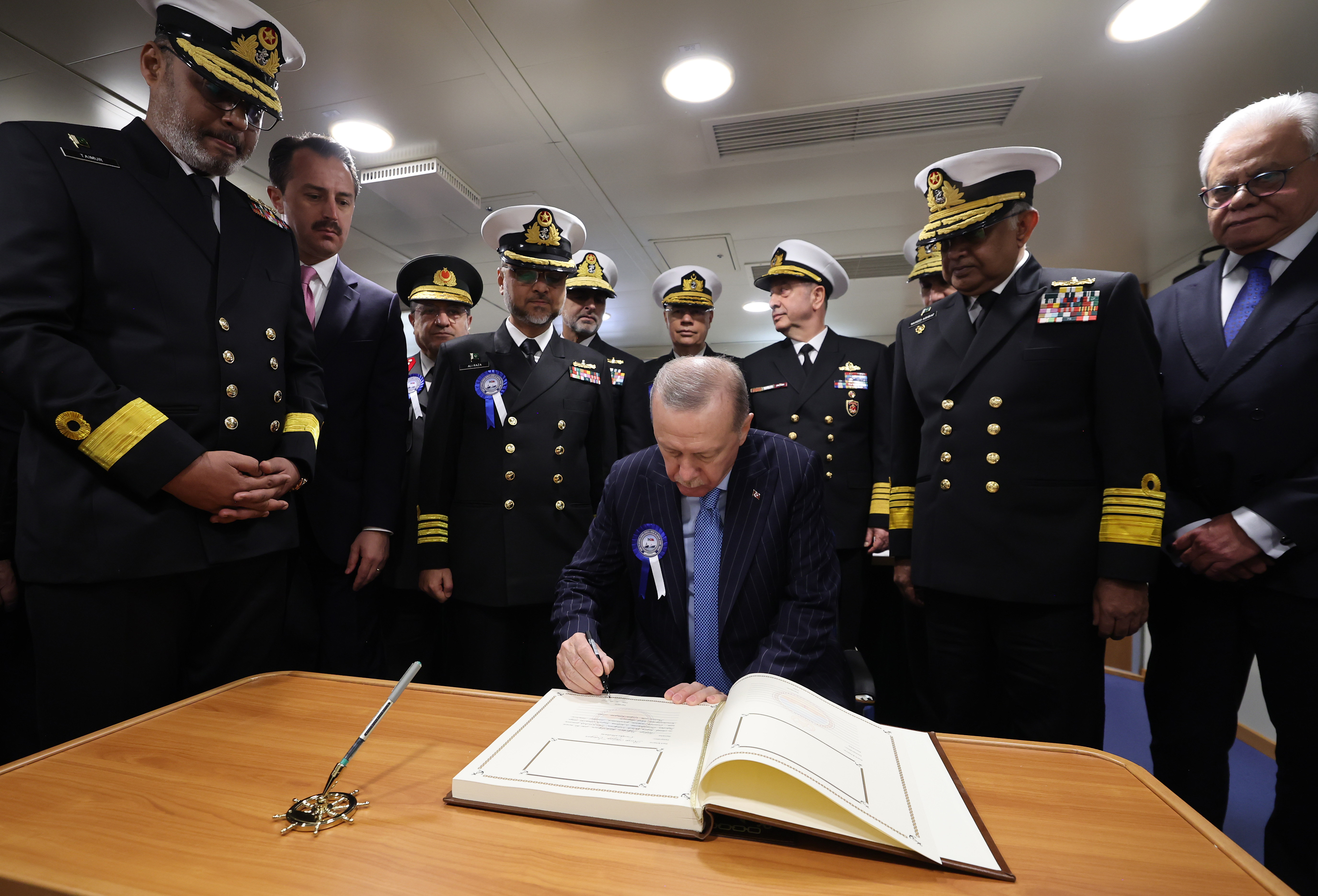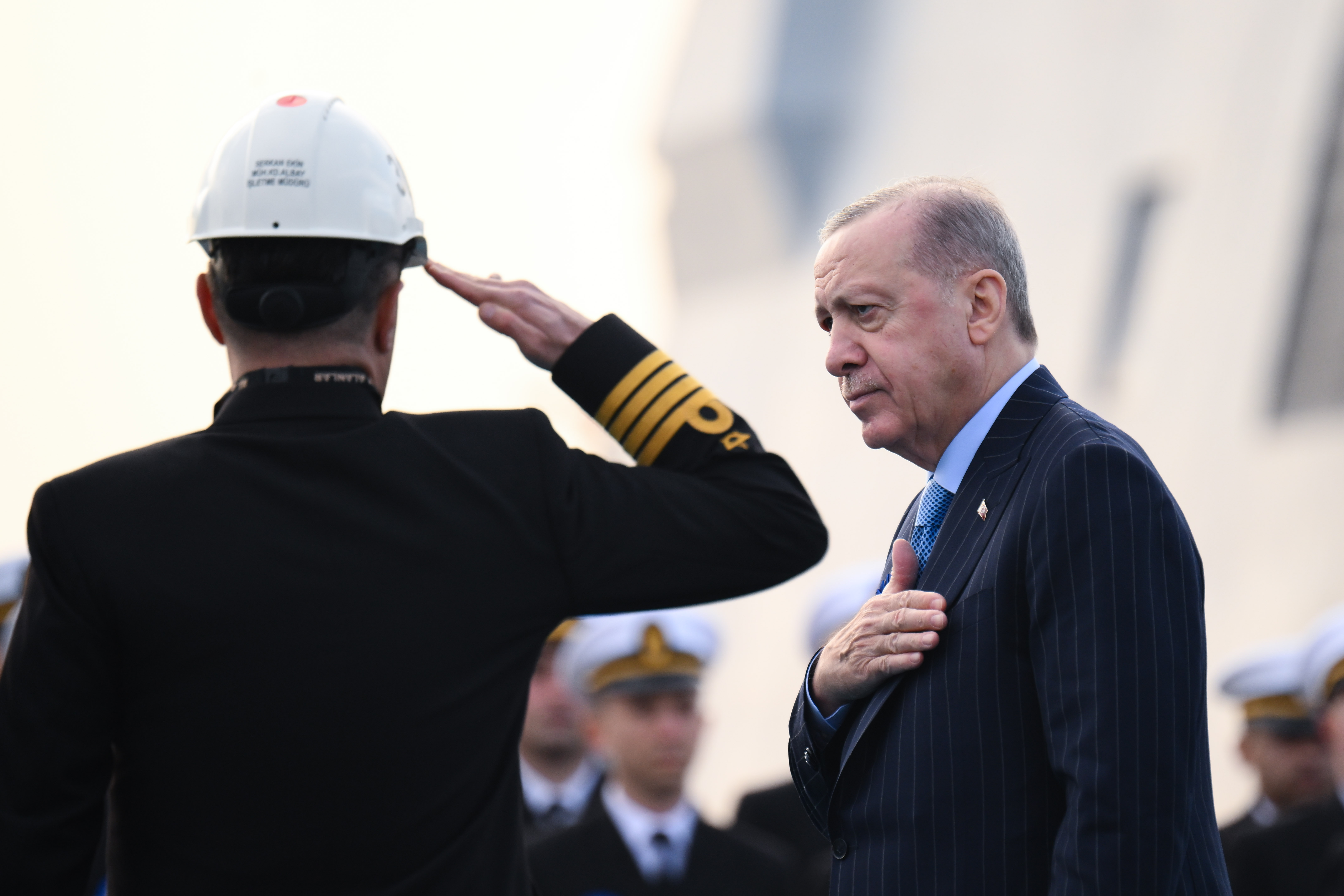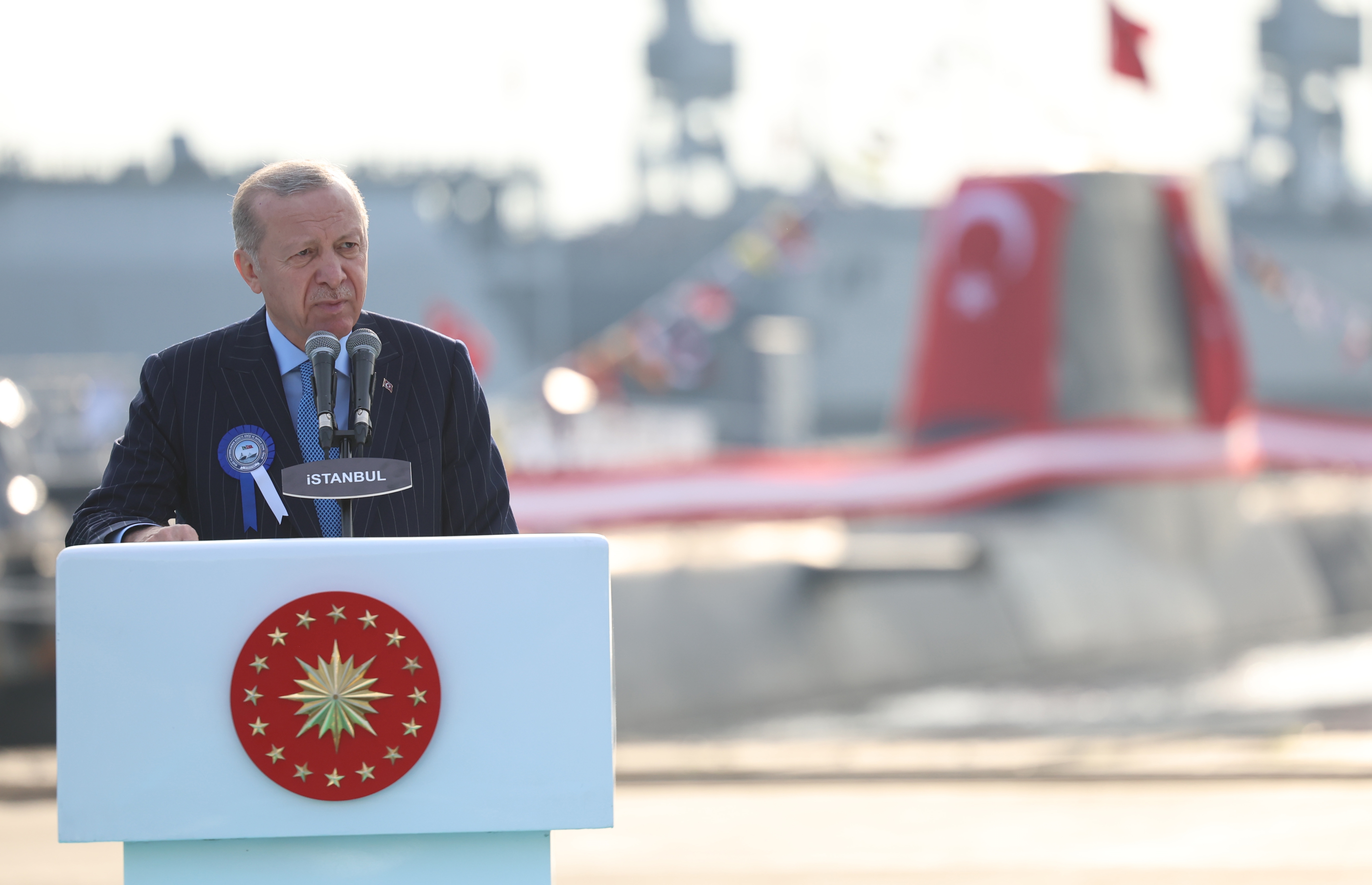 President Recep Tayyip Erdoğan made a speech at a ceremony for the commissioning, flag-raising and first steel-cutting ceremony of off-shore platforms at Istanbul Shipyard Command.