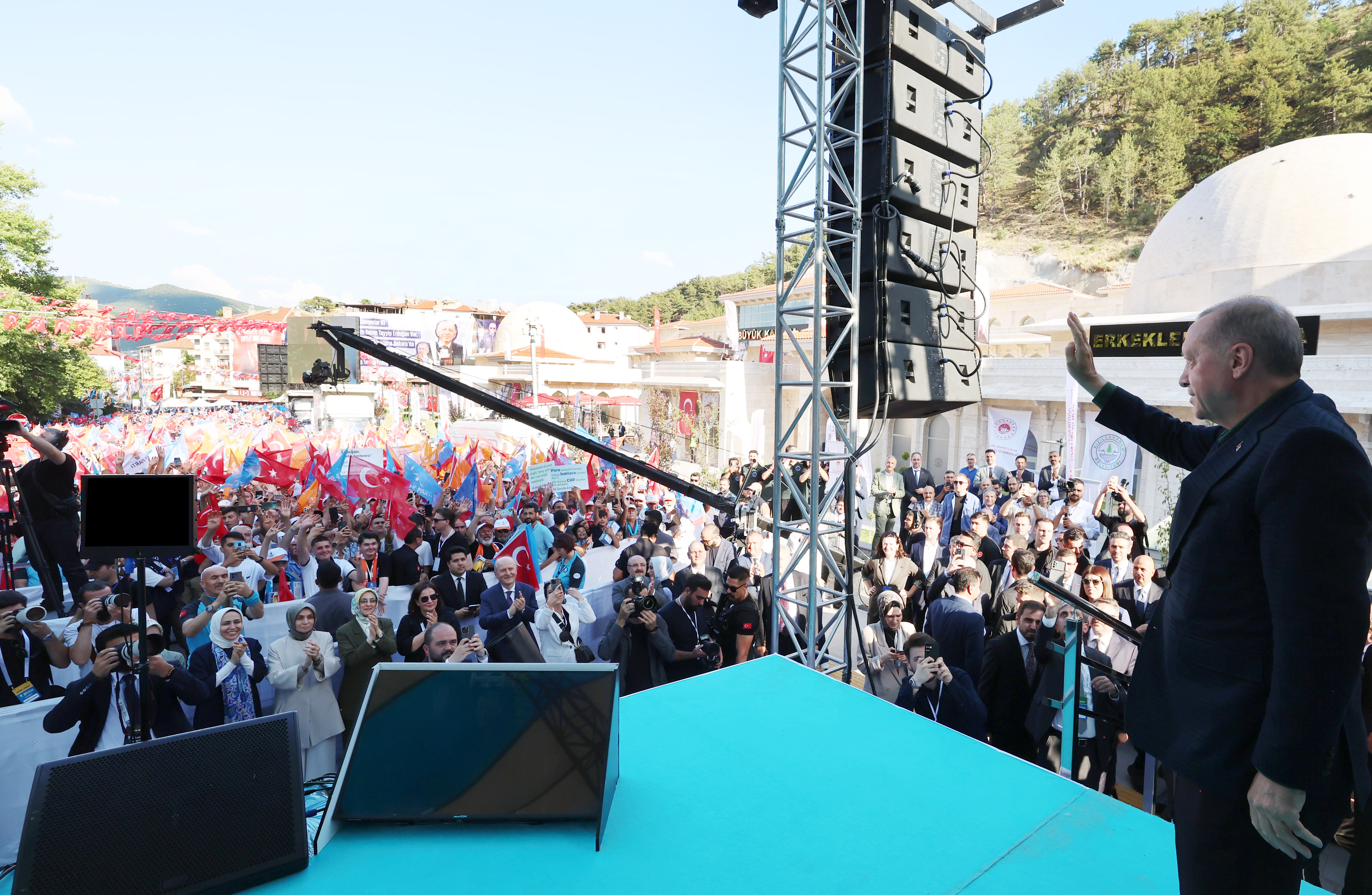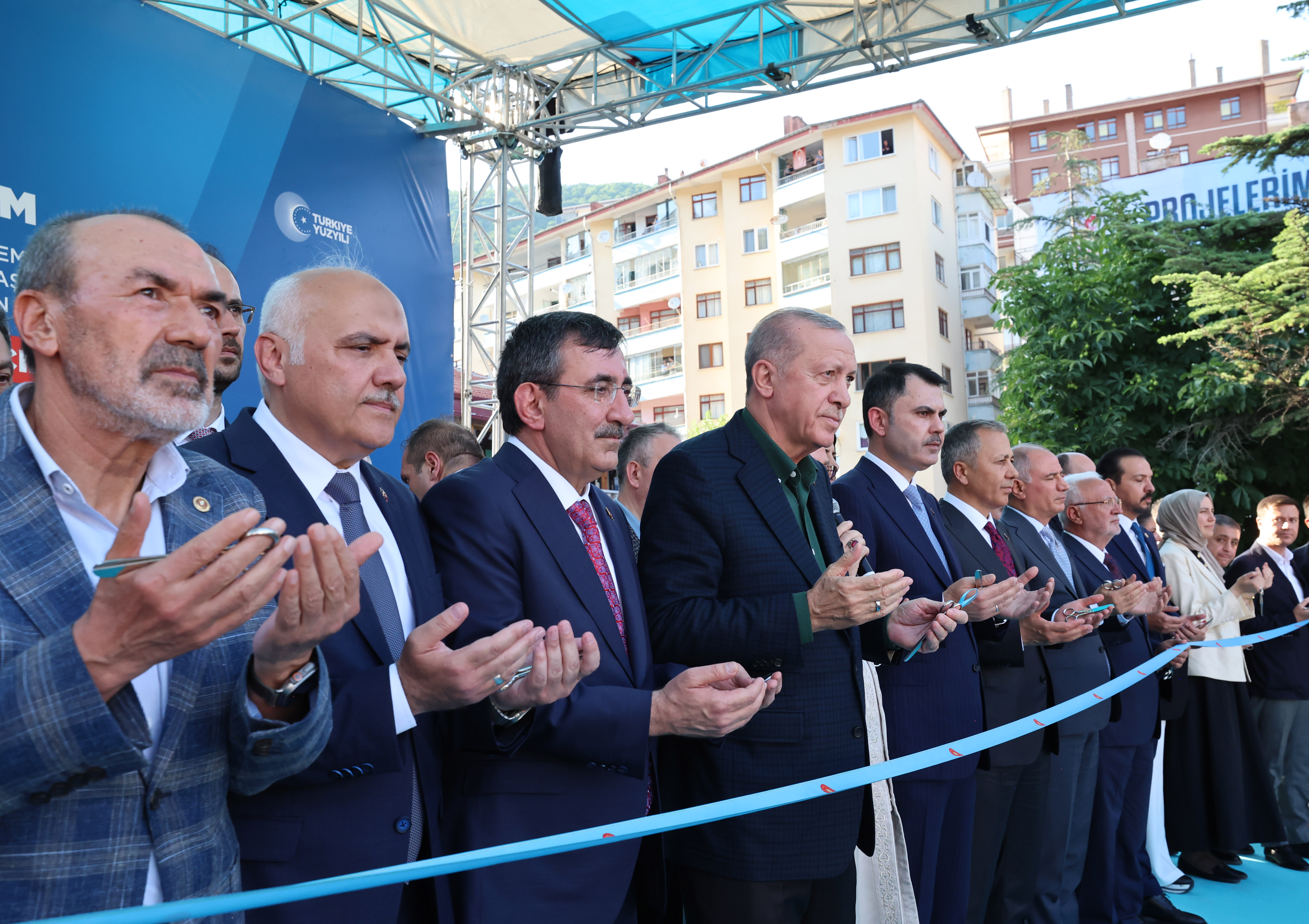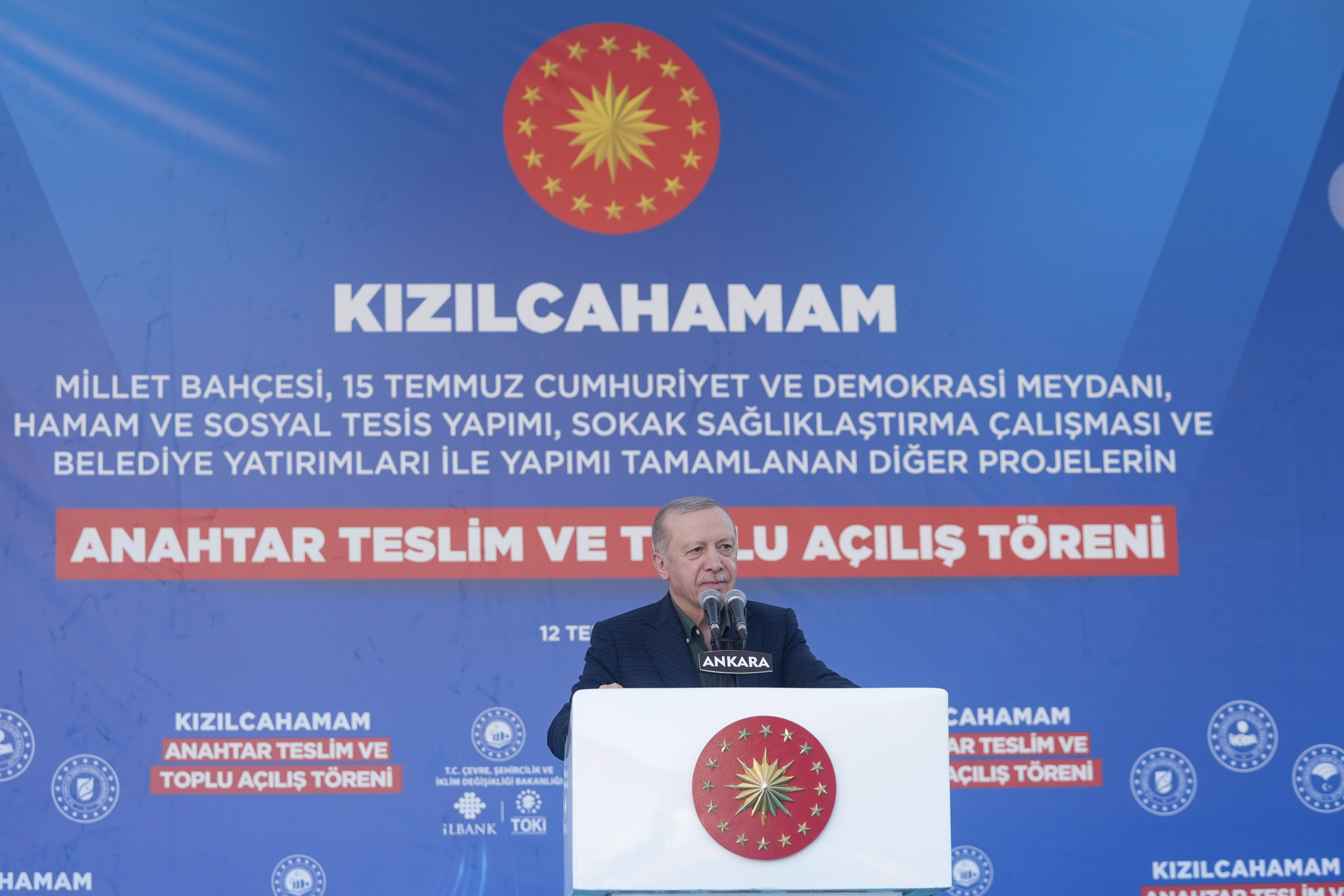 President Recep Tayyip Erdoğan delivered remarks at an opening and key delivery ceremony in Kızılcahamam, Ankara.