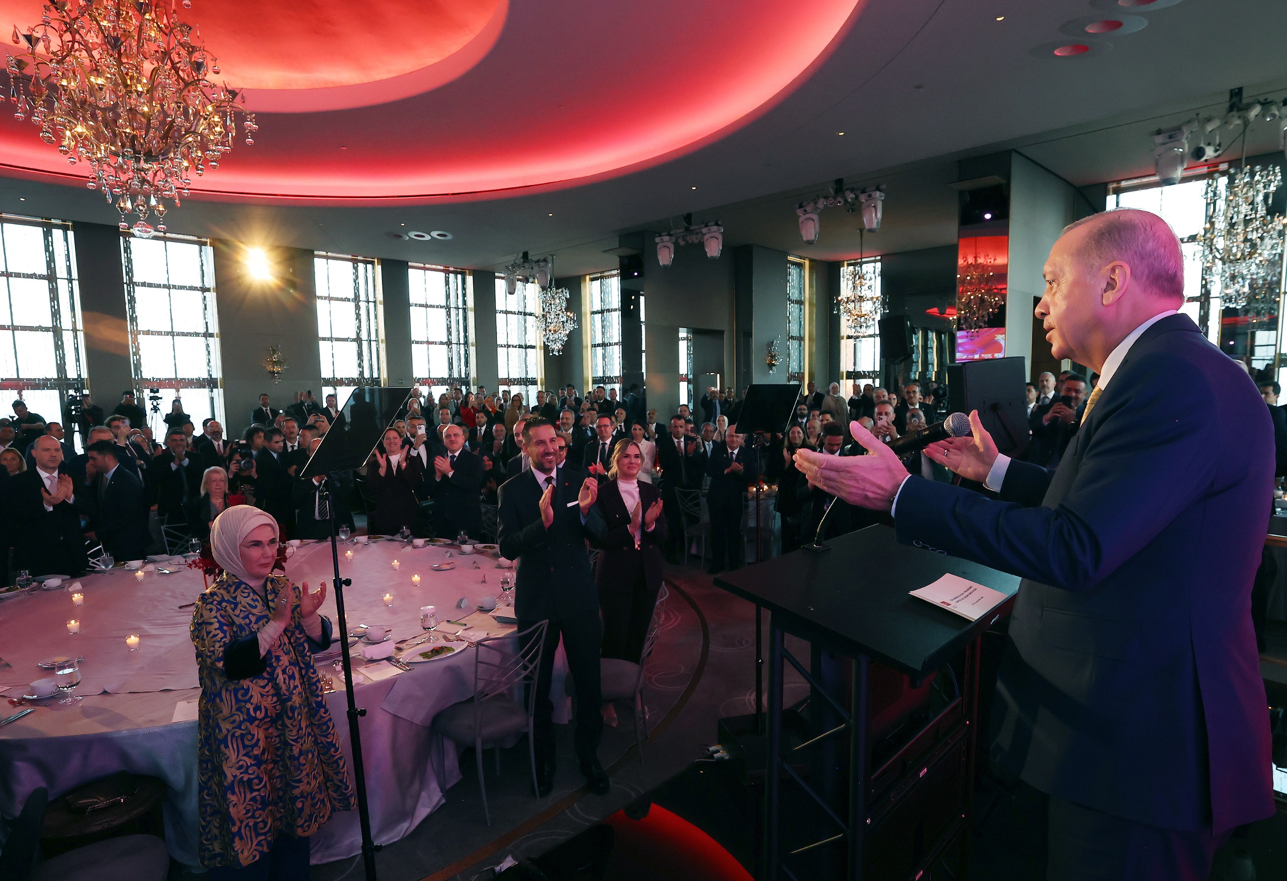 Voicing his observation that the Turkish community in the U.S. is getting more and more visible in the country’s social, political, economic and academic life, President Erdoğan stated: “I would like you, particularly our friends present here in this hall, to know that we take pride in your achievements. I congratulate each one of you for your endeavors, perseverance and efforts. As a brother of yours who has come to the U.S. on various occasions, I know, for sure, the fact that you assume crucial roles through the bonds you cultivate between Türkiye and the U.S. as well as through your contributions to the economic and social life in the U.S., your second homeland. You also serve as a bridge in enabling the U.S. people to better understand our culture and the values of our civilization. You already know that we, through our representative missions and other institutions, stand by you in the works you conduct here and endeavor to support you. We will continue to support the Turkish-American community in every field in the future as well.”