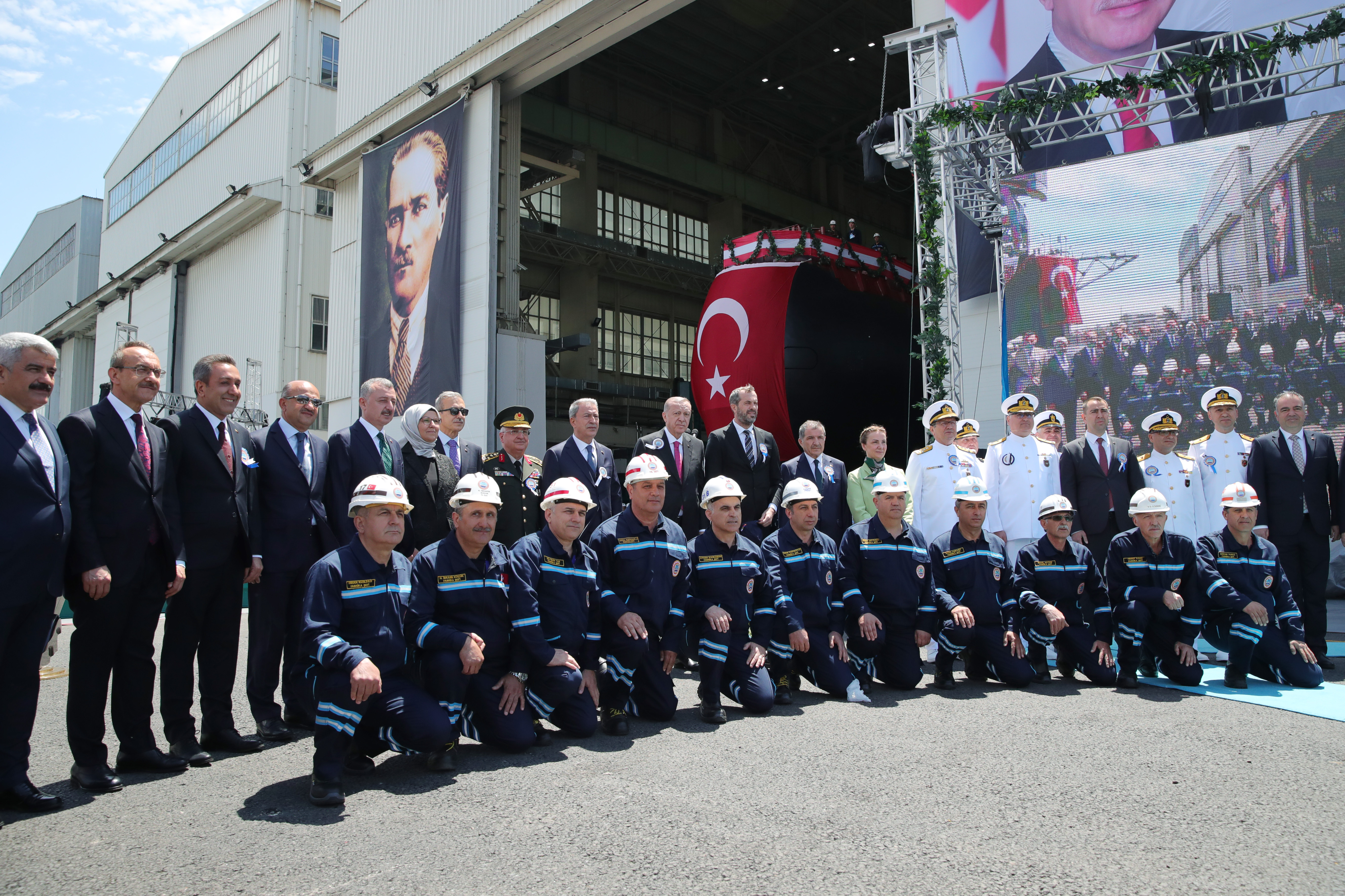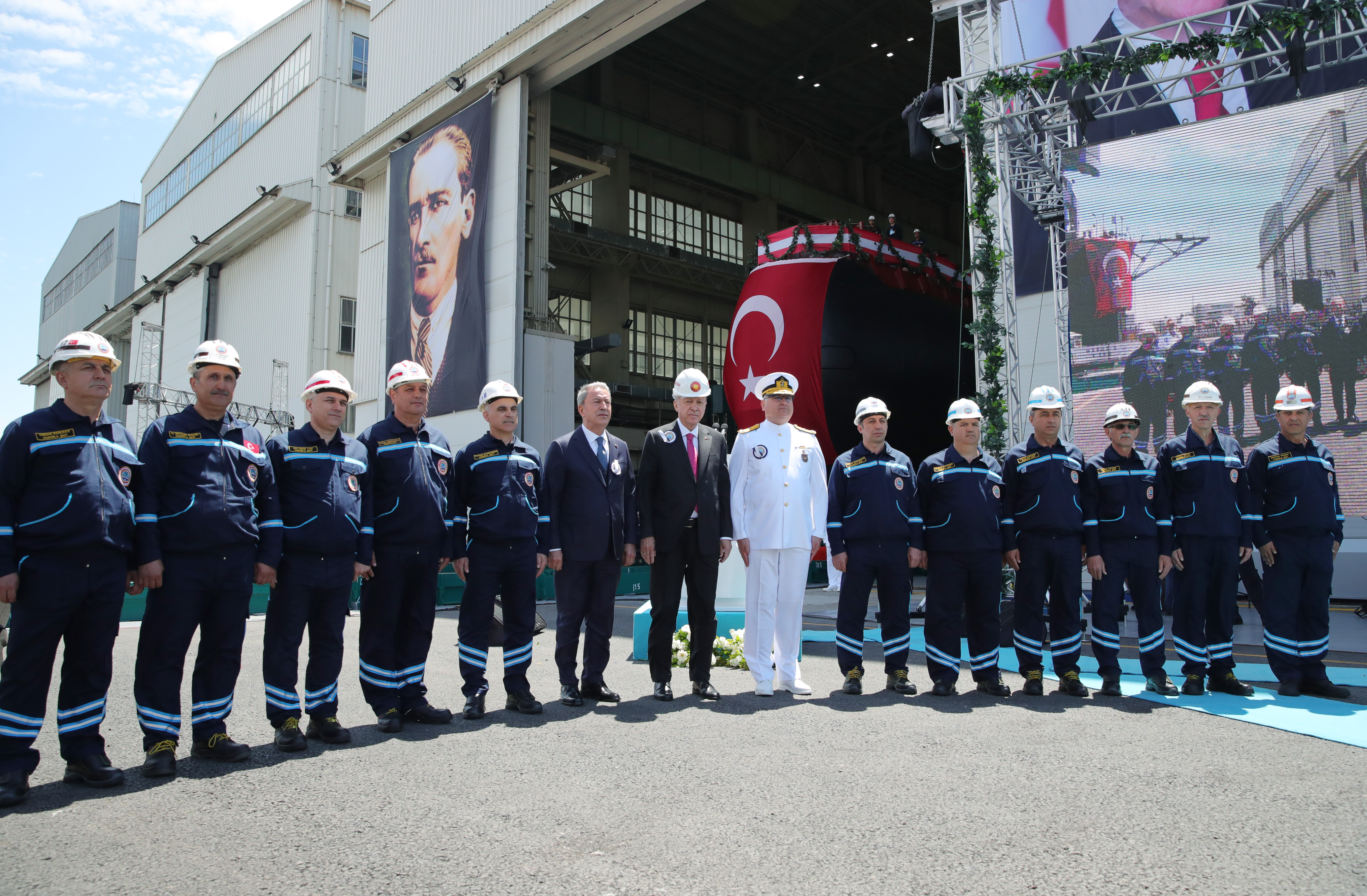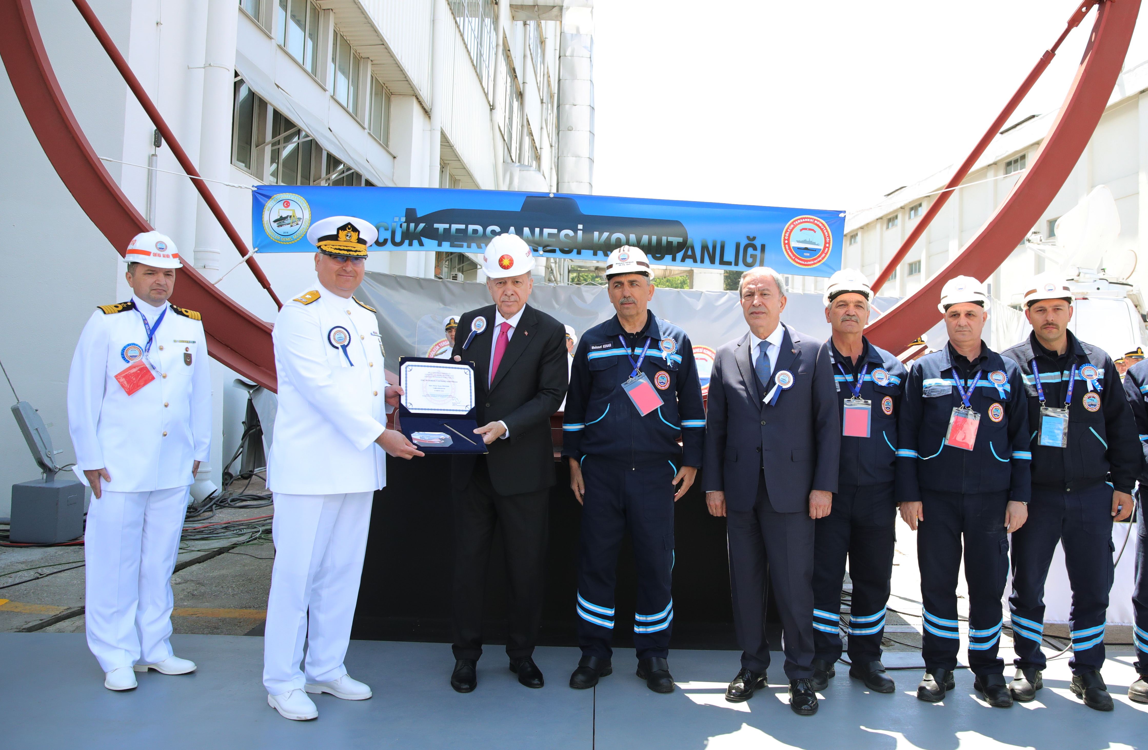 President Recep Tayyip Erdoğan made a speech at a ceremony held for the docking of Hızırreis submarine and the first welding of Selmanreis submarine at Gölcük Shipyard Command.