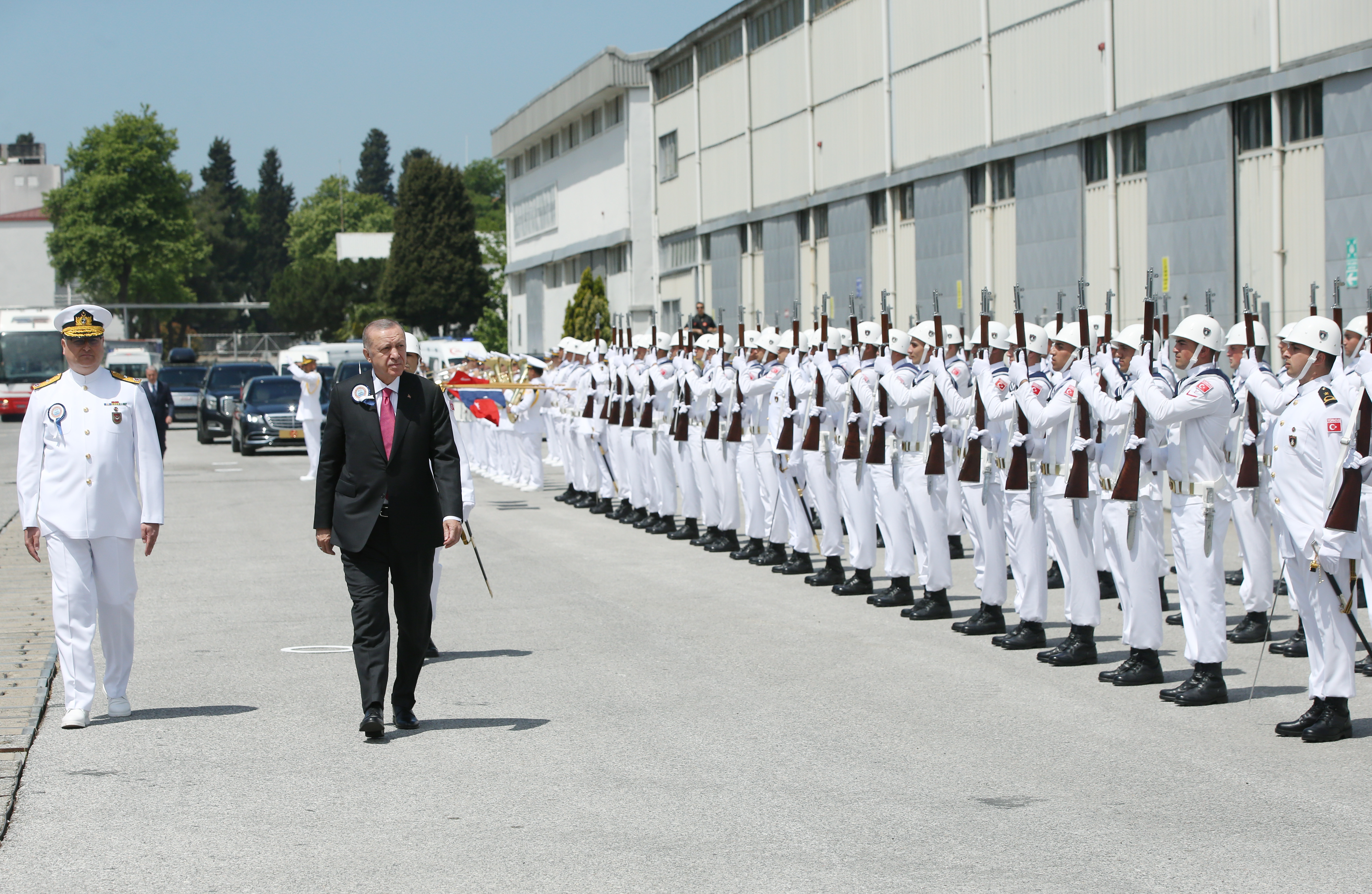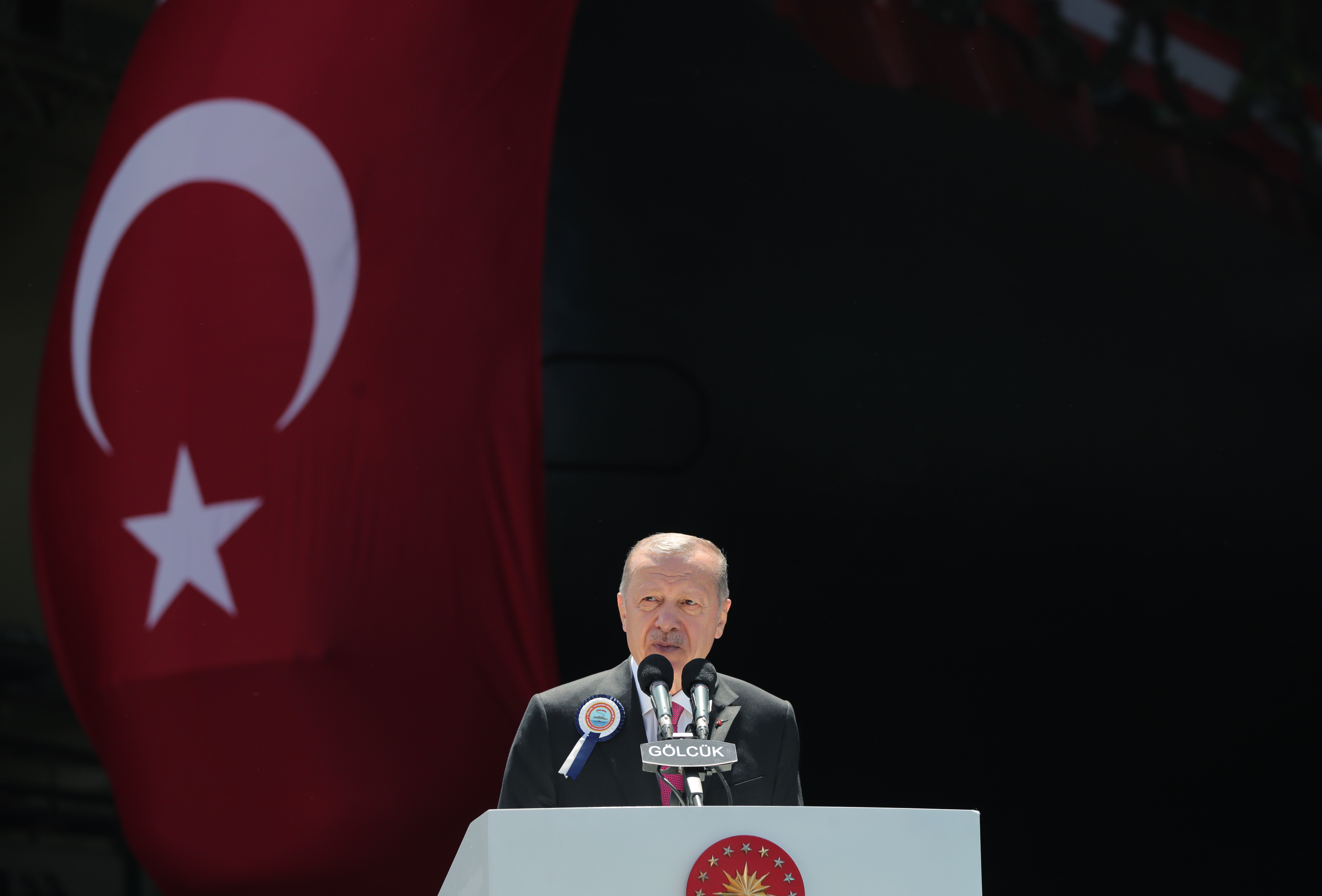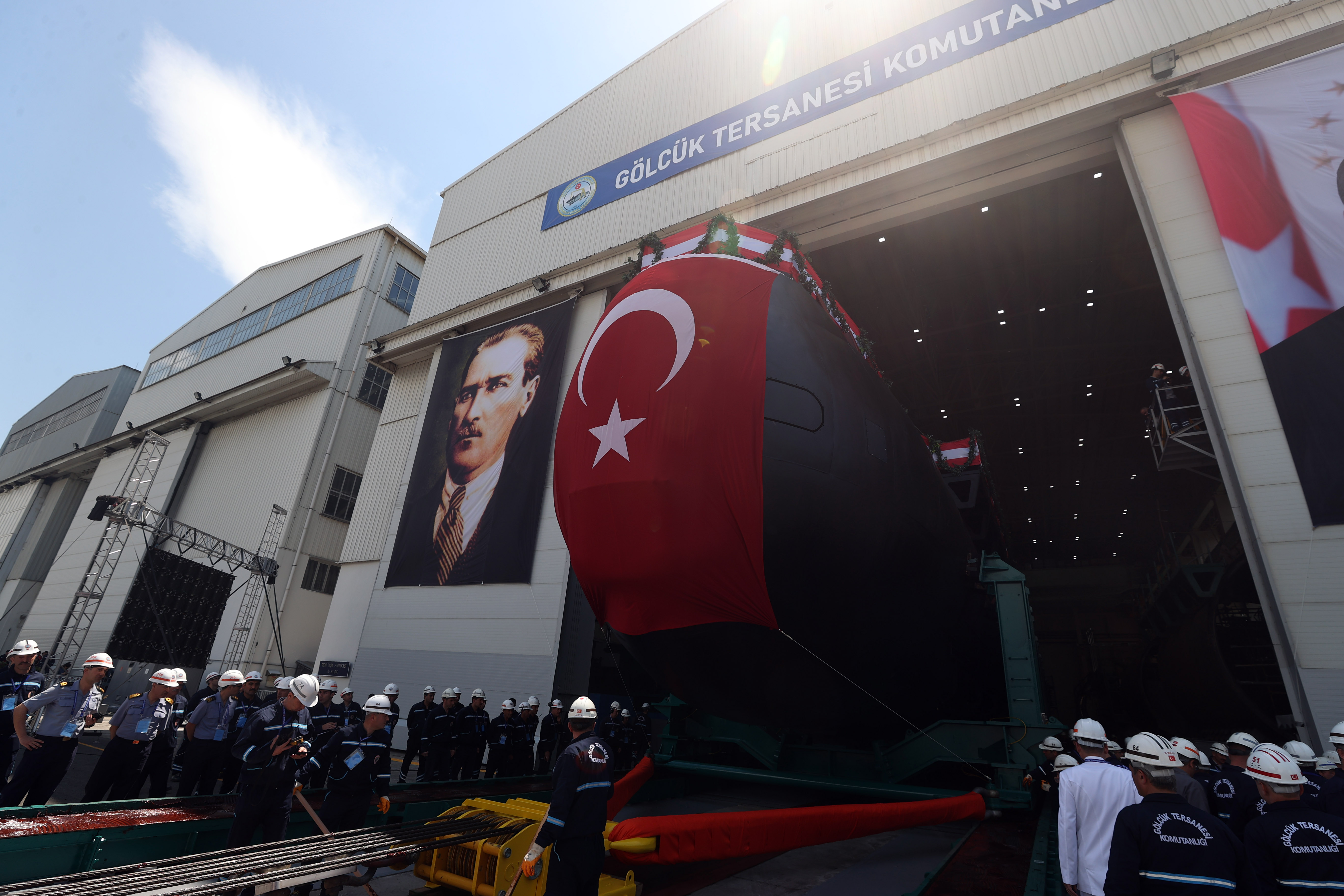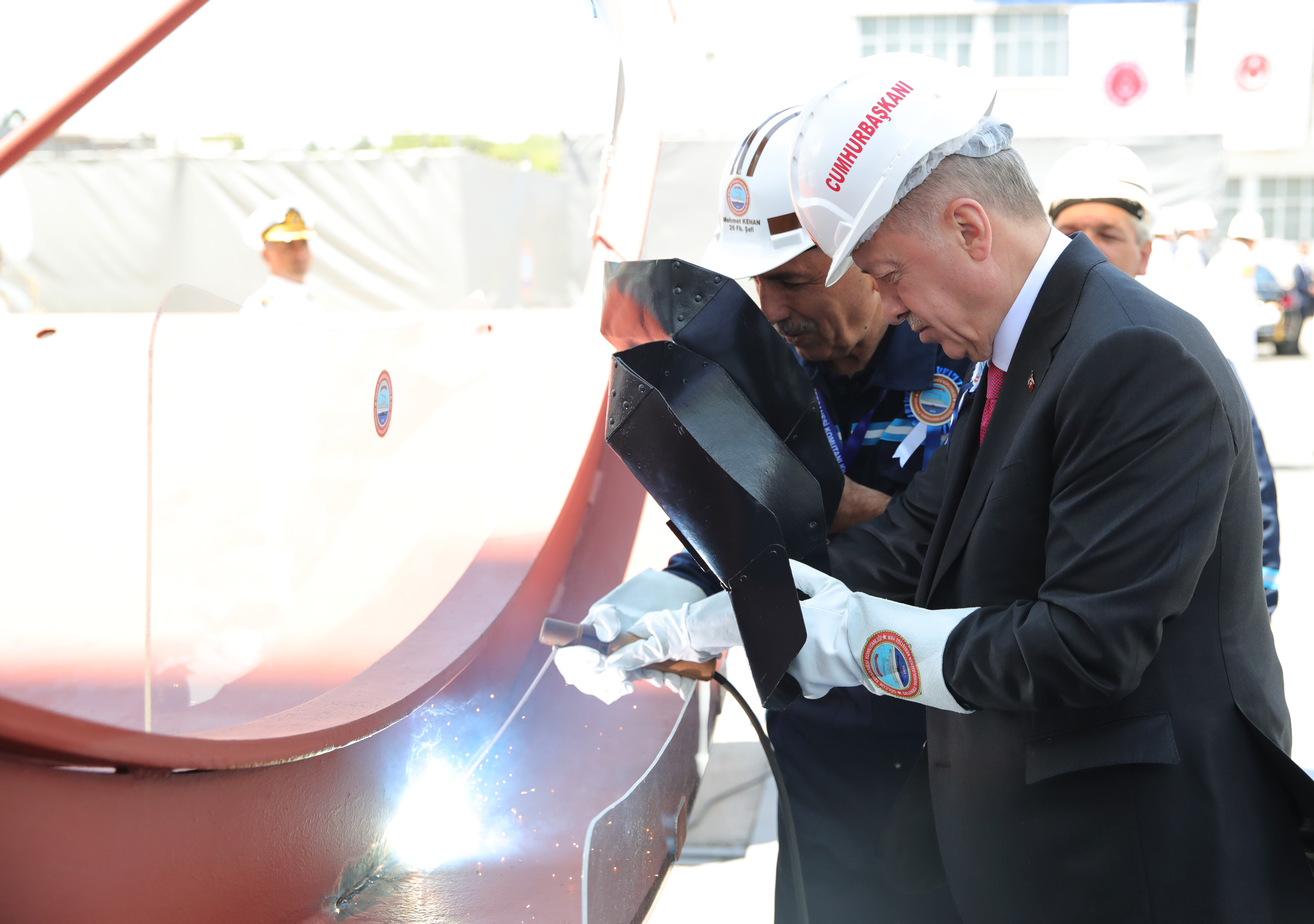 President Recep Tayyip Erdoğan made a speech at a ceremony held for the docking of Hızırreis submarine and the first welding of Selmanreis submarine at Gölcük Shipyard Command.