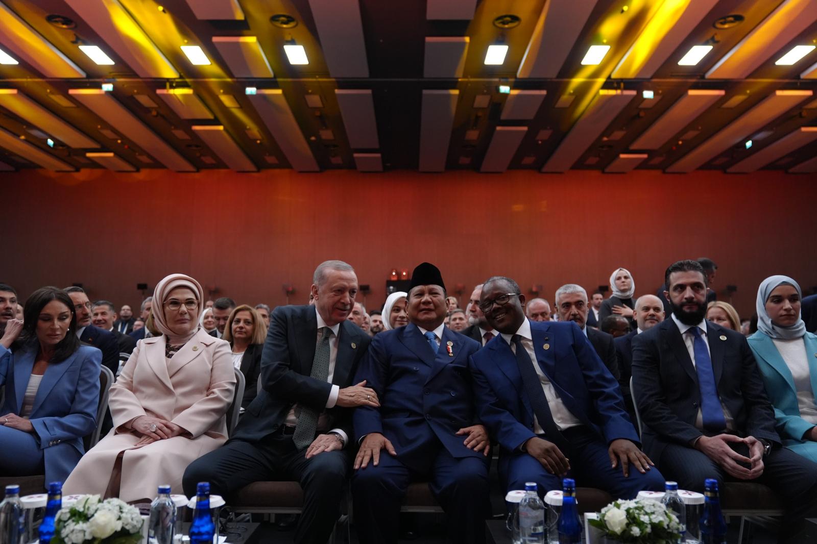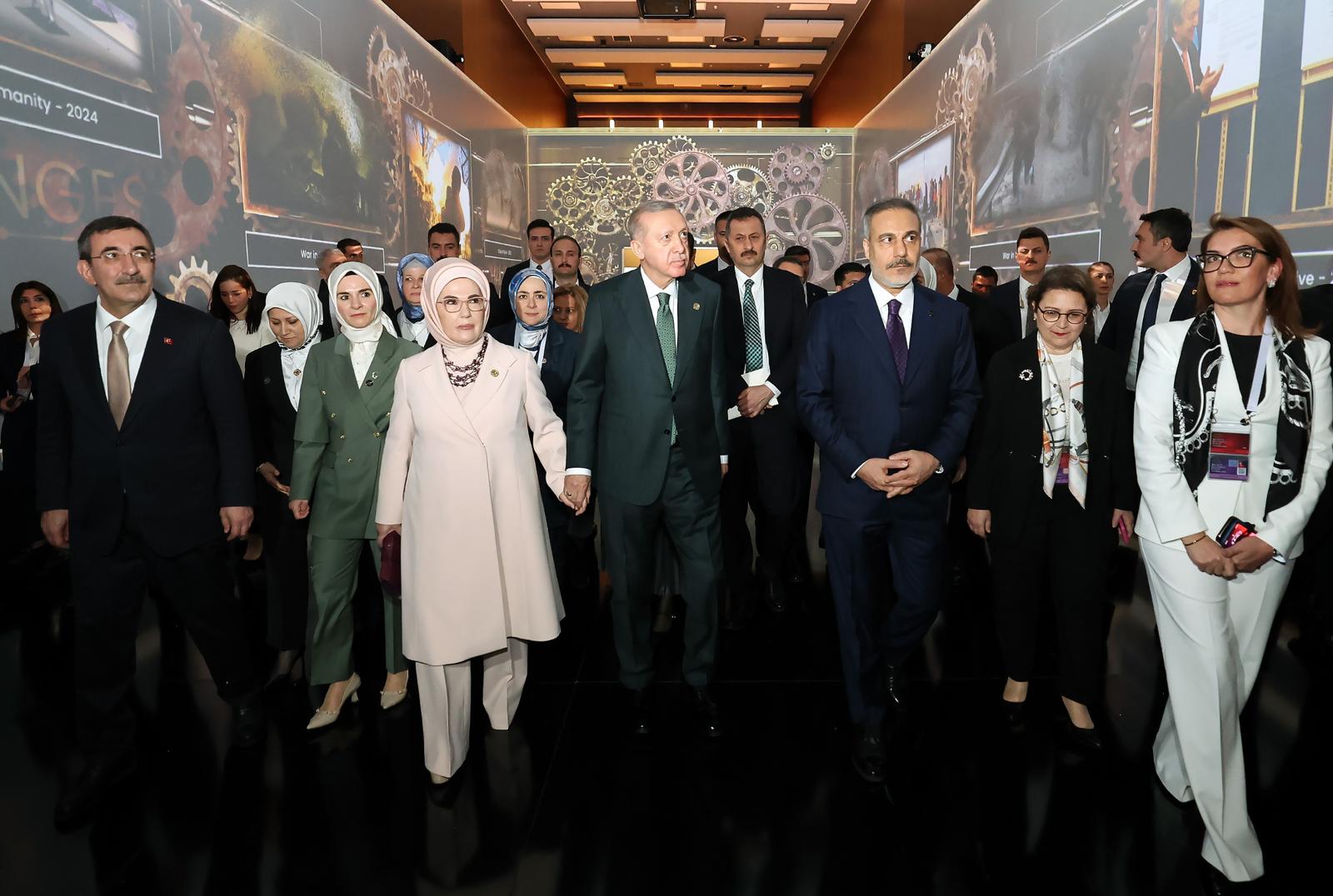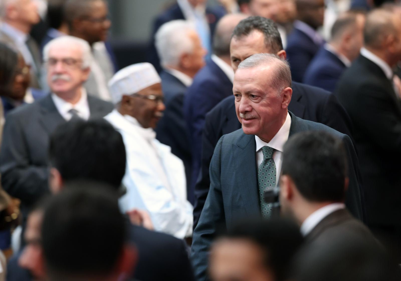 “We are not a country located in a comfortable geography away from problems. We live in a country which is as strategically important as it is prone to crises. This has always been the case throughout history. Our environment has never been free from occupation attempts, the Crusades, imperial schemes, or efforts to incite tensions and instabilities. Our geography has been the region most affected and most damaged by the destructive competition between great powers extending from the World War I to the Cold War. Today as well, many issues, wars, crises and tensions that dominate the internatinal political agenda unfold in our surrounding geograhy. I am proud to state that we are not merely inhabitants of this geography; we are also its rightful owners. We have been here for a thousand years, and inshallah, we will remain here for many more centuries to come. We want our region, which is as old as humanity itself, to be a geography of civilization, security, peace and serenity, in keeping with its deep-rooted history. We want to see a region where reconciliation prevails over conflicts; solidarity over fragmentation; and prosperity and stability over bloodshed, tears, sufferings and tensions. This is the world we wish to live in and leave to our children. This, we of course know, is not easy to achieve. We are well aware that peace takes more effort than war. Yet, we have always chosen the difficult one over the easy one and, today as well, we opt for the difficult one. In this spirit, just as we make efforts for lasting peace and stability in our surrounding geography such as Ukraine, Syria and Gaza, we are also taking responsibility through initiatives like mediation and facilitation in Arica and Asia. By fostering good relations with our neighbors, by expanding the means for cooperation and trade, and also by building bridges of dialogue between conflicting parties, we are striving to establish a belt of peace and security around our country,” President Erdoğan said.