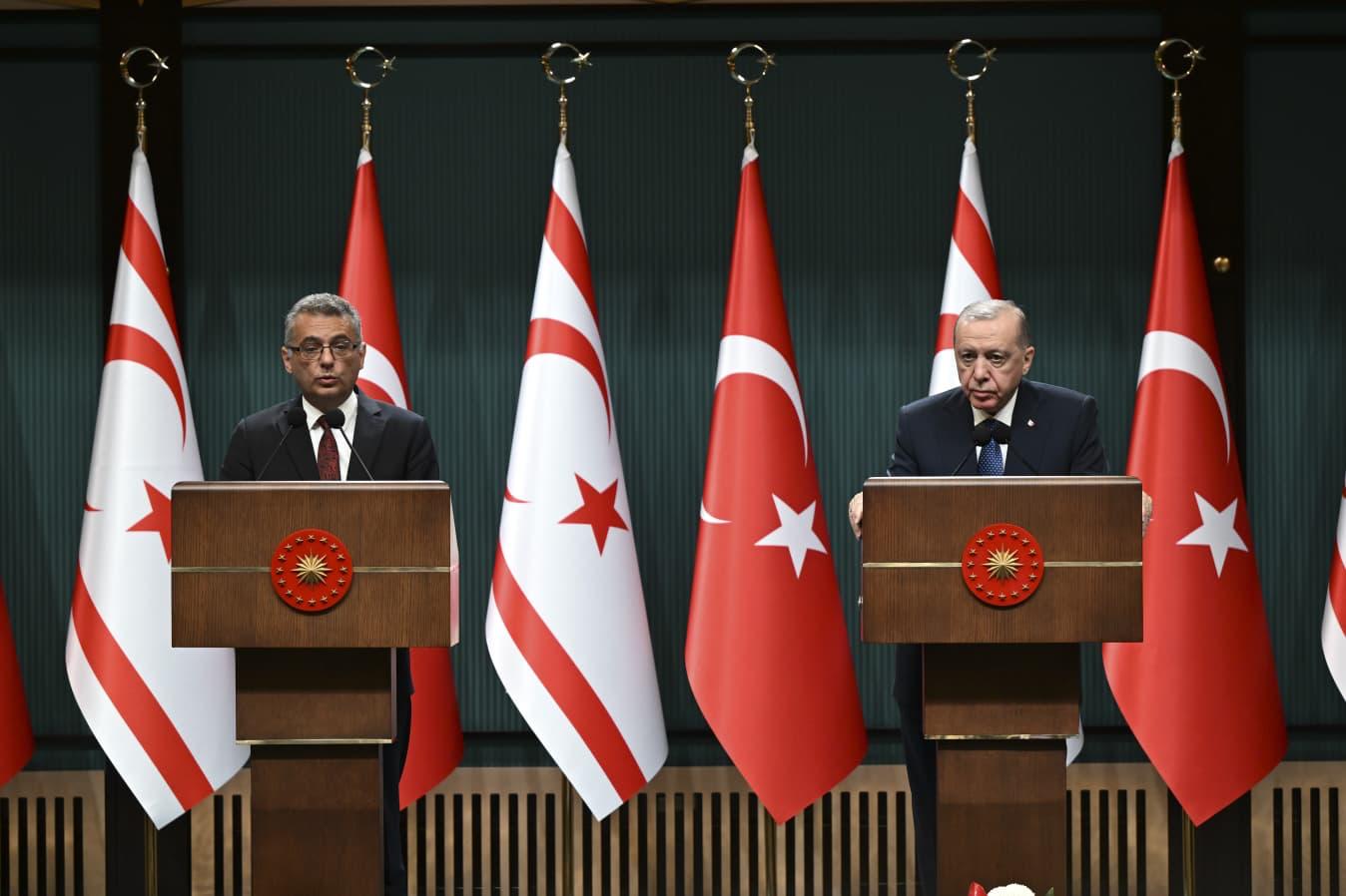 President Recep Tayyip Erdoğan and President Tufan Erhürman of the Turkish Republic of Northern Cyprus held a joint press conference at the Presidential Complex.