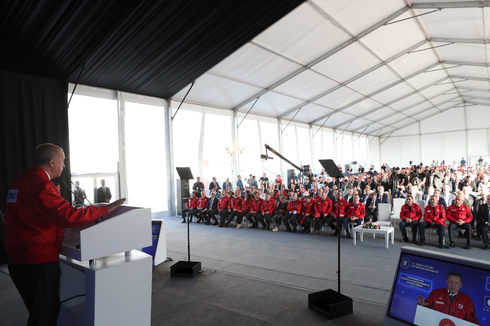 President Recep Tayyip Erdoğan made a speech at a ceremony for the placement and welding of the first pipe of the Black Sea Natural Gas.