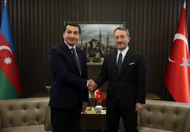 Presidency's Head of Communications Fahrettin Altun met with Hikmet Hajiyev, Assistant to the President of the Republic of Azerbaijan, at the Presidency’s Directorate of Communications. The commitment to strengthen the deep-rooted cooperation between Türkiye and Azerbaijan, two friendly and brotherly countries, in the fields of communication and media was emphasized at the meeting.