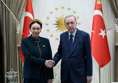 President Recep Tayyip Erdoğan received Dunyagozel Gulmanova, Chairperson of the Mejlis of Turkmenistan, at the Presidential Complex. Speaker of the Grand National Assembly of Türkiye (GNAT) Numan Kurtulmuş was also present at the meeting. Source: Presidency of the Republic of Türkiye