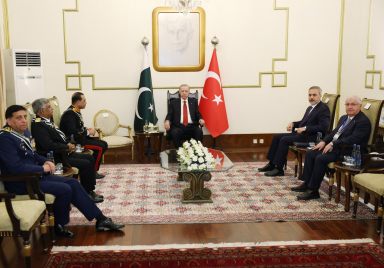 President Recep Tayyip Erdoğan, who is in Islamabad for official talks, received Pakistani force commanders. Minister of Foreign Affairs Hakan Fidan and Minister of National Defense Yaşar Güler were also present at the meeting. Source: Presidency of the Republic of Türkiye