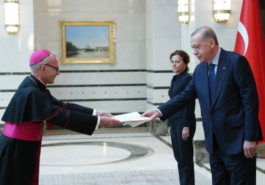 President Recep Tayyip Erdoğan received Ambassador Marek Solczyński of the Vatican at the Presidential Complex. At the meeting, Ambassador Solczyński presented his credentials to President Erdoğan. https://www.tccb.gov.tr/en/news/542/138851/ambassador-of-the-vatican-presents-his-credentials-to-president-erdogan