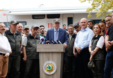 President Recep Tayyip Erdoğan paid a visit to the firefighting coordination center in Muğla’s district of Marmaris. Making a speech at the center, President Erdoğan noted that the wildfires were taken under control, with afforestation works set to begin soon in areas affected by the fires. https://www.tccb.gov.tr/en/news/542/138492/president-erdogan-visits-firefighting-coordination-center-in-marmaris