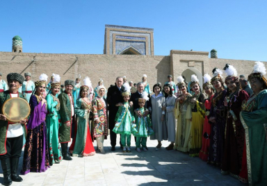 The video starts with a shot of the presidential aircraft landing at Tashkent Airport and continues with footage of President Erdoğan's welcoming and wreath-laying ceremony on the Independence Monument in Yangi O’zbekistan Park (New Uzbekistan Park), as well as bilateral and inter-delegation meetings, and the two leaders' visit to the ancient city of Khiva. The Administration of the President of the Republic of Uzbekistan has put together a video clip including footage from President Recep Tayyip Erdoğan's visit to the country. The video clip created by the Press-service of the President of the Republic of Uzbekistan starts...
