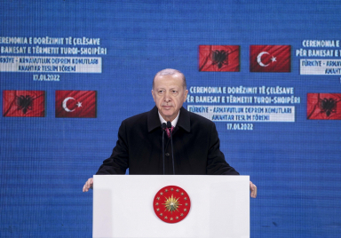 President Recep Tayyip Erdoğan will pay a visit to Albania on January 17, 2022 at the invitation of Prime Minister Edi Rama of Albania. All aspects of Türkiye-Albania relations that are at the strategic partnership level will be reviewed and steps that would deepen the cooperation between the two countries will be discussed. Besides bilateral relations, views on regional and international matters will be exchanged at the talks. As part of the visit, the delivery ceremony of the houses built by Türkiye in the city of Laç for the families, who had lost their homes in the earthquake disaster...