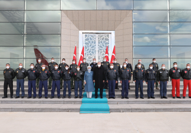 President Recep Tayyip Erdoğan congratulated the pilots he met at Esenboğa Airport on World Pilots’ Day. President Erdoğan was greeted at Esenboğa Airport by pilots upon his arrival in Ankara from Istanbul. Conversing with the pilots and congratulating them on World Pilots’ Day, President Erdoğan had a souvenir photo taken. President Erdoğan was accompanied by his spouse, First Lady Emine Erdoğan.