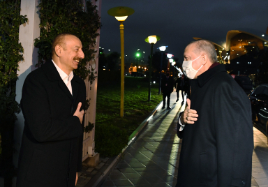 President Recep Tayyip Erdoğan visited Azerbaijan’s national leader Heydar Aliyev’s mausoleum as well as Turkish and Azerbaijani martyrs’ memorial in Baku. President Erdoğan and his Azerbaijani counterpart Ilham Aliyev first visited Azerbaijan’s national leader Heydar Aliyev’s mausoleum. Afterwards, the two leaders proceeded to the martyrs’ memorial. After laying a wreath at the memorial, President Erdoğan and President Aliyev signed the Book of Honor, marking the solidarity between two countries and the liberation of Azerbaijani lands from Armenian occupation following a 44-day-long glorious fight.