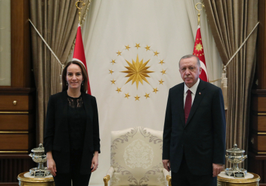 President Recep Tayyip Erdoğan met with President of the Inter-Parliamentary Union (IPU) Gabriela Cuevas Barron at the Presidential Complex. Speaker of the Grand National Assembly of Turkey (GNAT) Mustafa Şentop was also present at the meeting. https://www.tccb.gov.tr/en/news/542/122013/president-erdogan-receives-ipu-president-barron