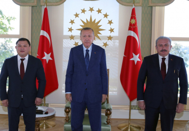 President Recep Tayyip Erdoğan received Speaker of the Parliament of Kyrgyzstan Dastanbek Djumabekov. President Erdoğan left his residence in Kısıklı around noon and went to Vahdettin Mansion. Erdoğan received Speaker of the Parliament of Kyrgyzstan Dastanbek Djumabekov and the delegation accompanying him at Vahdettin Mansion. During the meeting closed to the press, Speaker of the Grand National Assembly of Turkey Mustafa Şentop was also present.