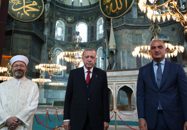 President Recep Tayyip Erdoğan made examinations at the Hagia Sophia Mosque, which will reopen for worship with Friday prayers tomorrow after 86 years. Arriving in Istanbul after the Supreme Military Council (YAŞ) held at the Presidential Complex, President Erdoğan came to the Hagia Sophia Mosque from Atatürk Airport. Erdoğan stayed for about an hour at the Hagia Sophia Mosque where he also examined four days ago. Erdoğan, who was briefed by Minister of Culture and Tourism Mehmet Nuri Ersoy and the Governor of Istanbul Ali Yerlikaya about the preparations for the opening tomorrow, was accompanied by...