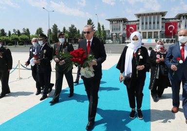 President Recep Tayyip Erdoğan visited July 15 Martyrs' Monument on the occasion of the July 15 Democracy and National Unity Day. Accompanied by the relatives of July 15 martyrs and the ghazis, President Erdoğan laid flowers at the monument and prayed for the martyrs. https://www.tccb.gov.tr/en/news/542/120630/president-erdogan-visits-july-15-martyrs-monument