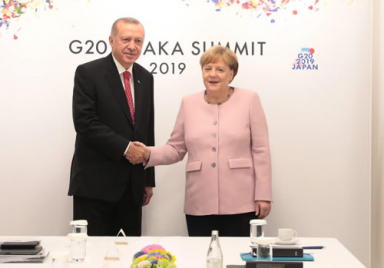 President Recep Tayyip Erdoğan met with Chancellor Angela Merkel of Germany on the sidelines of the G20 Osaka Summit in Japan. Minister of Foreign Affairs Mevlüt Çavuşoğlu, Minister of Treasury and Finance Berat Albayrak and Minister of National Defense Hulusi Akar accompanied the President during the meeting at the International Exhibition Center (INTEX), the venue of the summit. https://www.tccb.gov.tr/en/news/542/106815/president-erdogan-meets-with-chancellor-merkel-of-germany