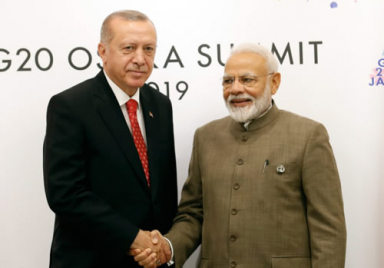 President Recep Tayyip Erdoğan met with Prime Minister Narendra Modi of India on the sidelines of the G20 Osaka Summit in Japan. Minister of Foreign Affairs Mevlüt Çavuşoğlu, Minister of Treasury and Finance Berat Albayrak and Minister of National Defense Hulusi Akar accompanied the President during the meeting at the International Exhibition Center (INTEX), the venue of the summit. https://www.tccb.gov.tr/en/news/542/106819/president-erdogan-meets-with-indian-pm-modi